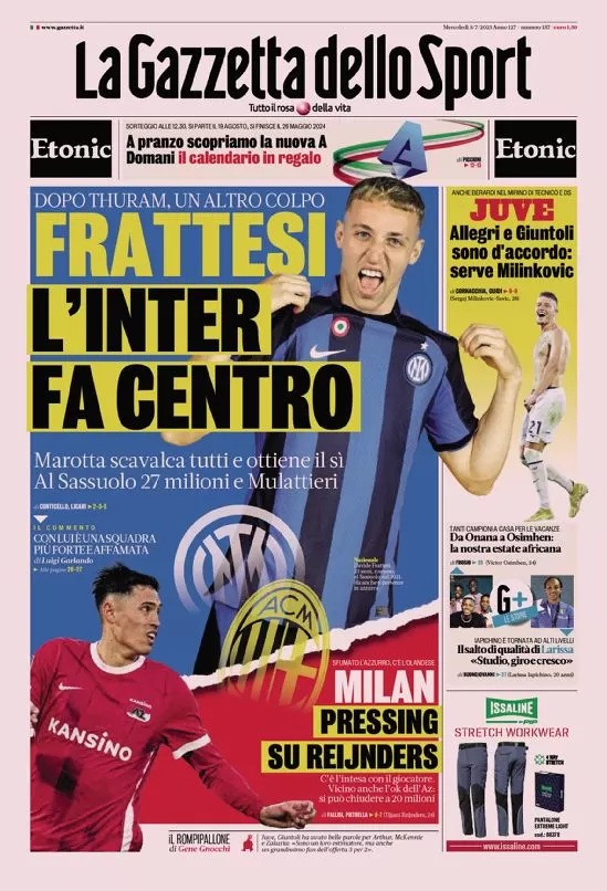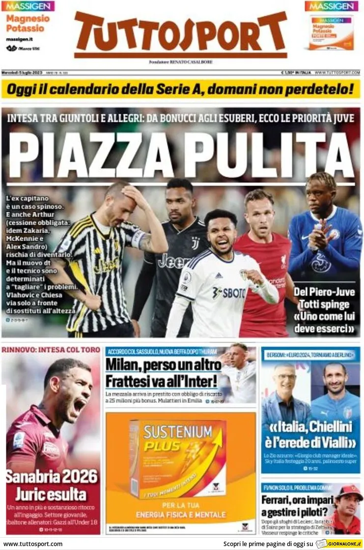 Le prime pagine dei quotidiani sportivi in edicola mercoledì 5 luglio