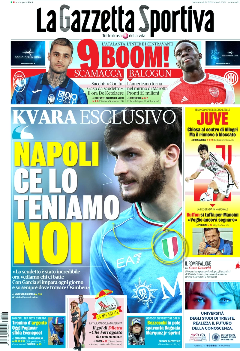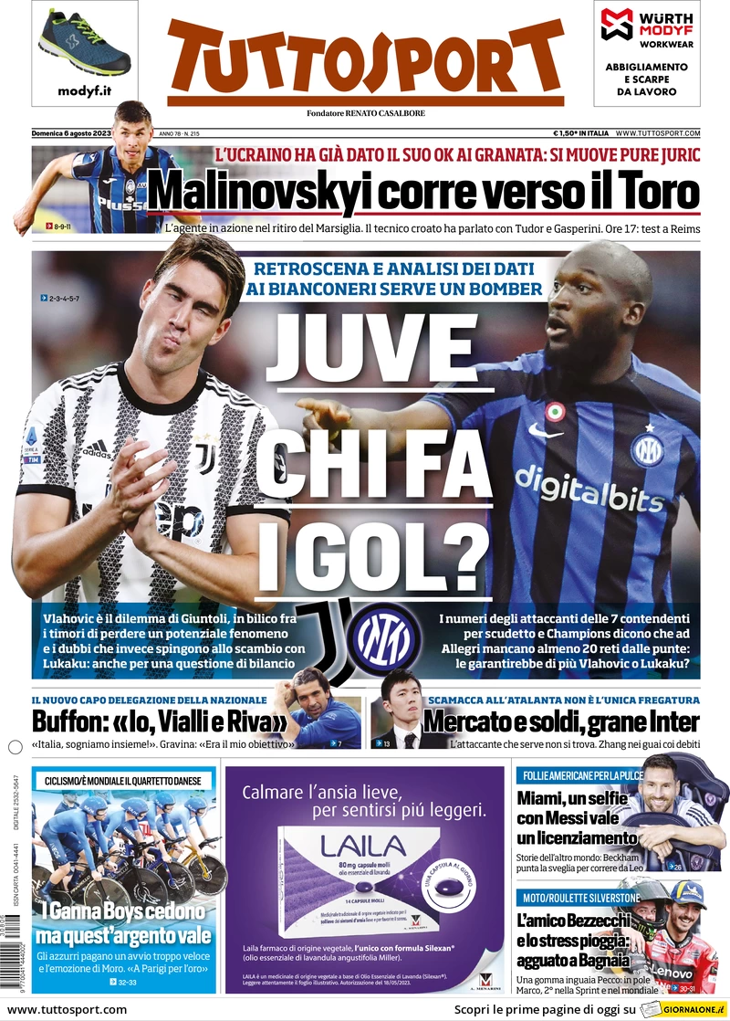 Le prime pagine dei quotidiani sportivi in edicola domenica 6 agosto