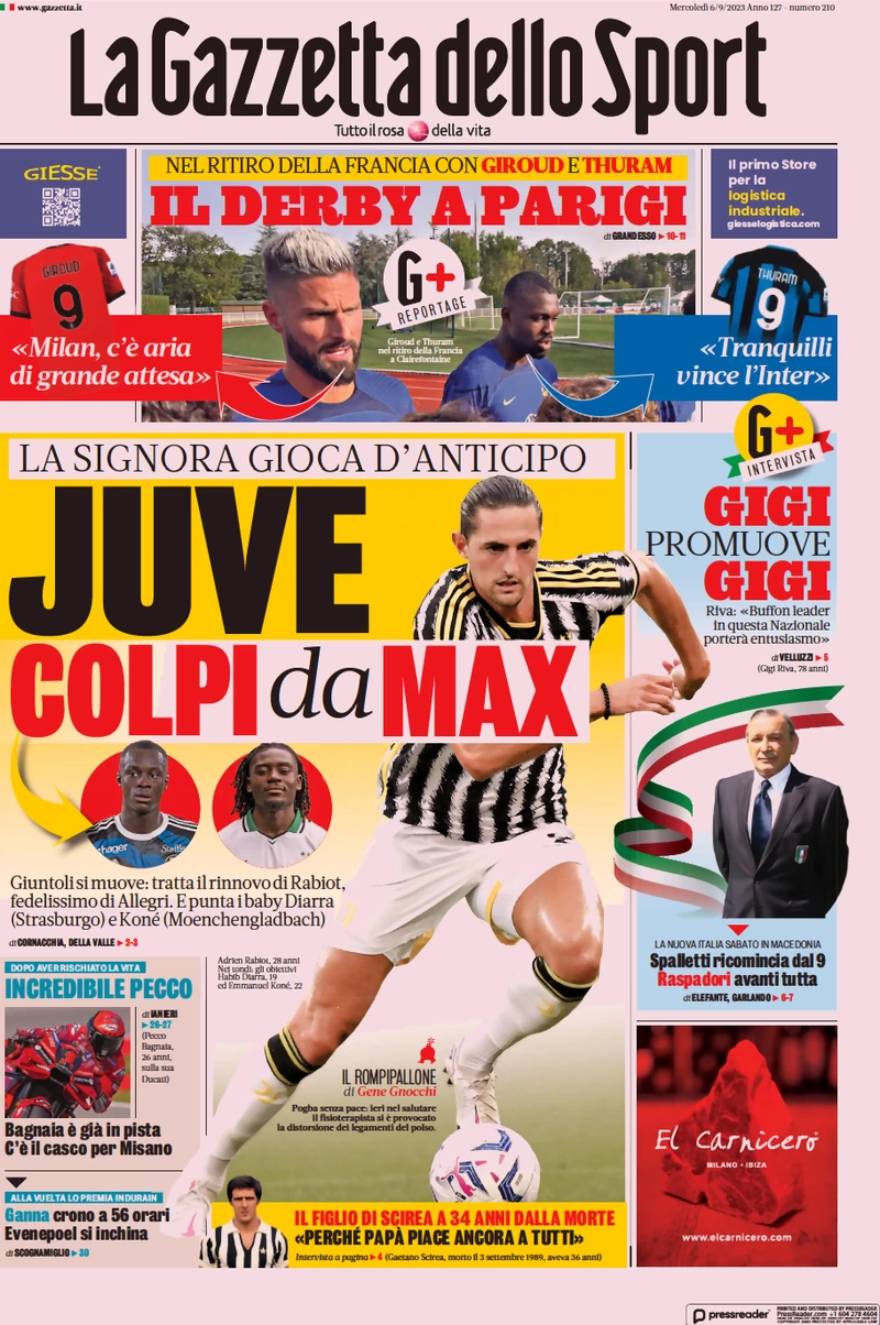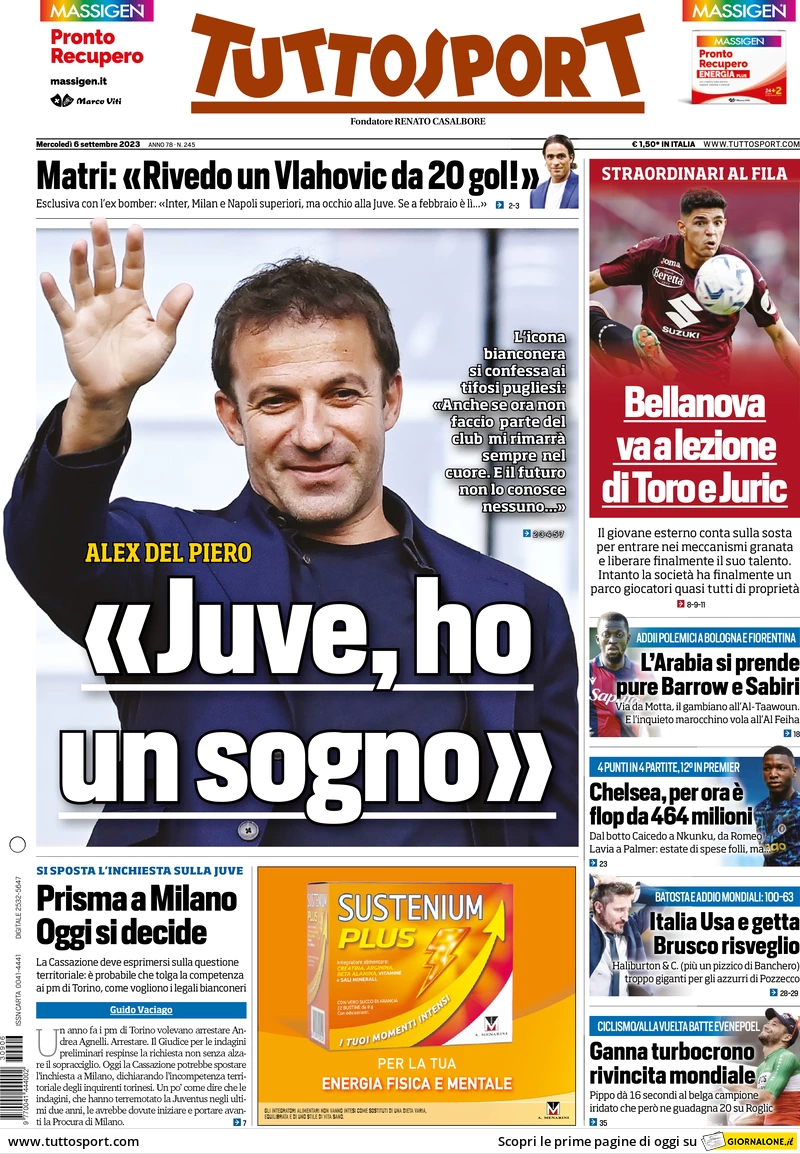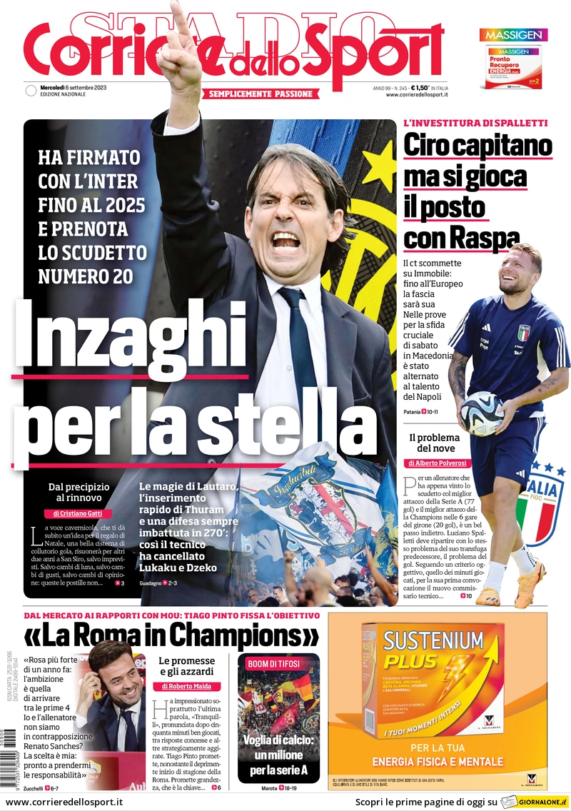 Le prime pagine dei quotidiani sportivi in edicola mercoledì 6 settembre