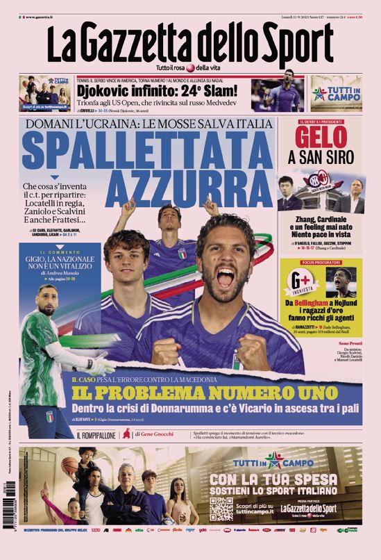 Le prime pagine dei quotidiani sportivi in edicola lunedì 11 settembre