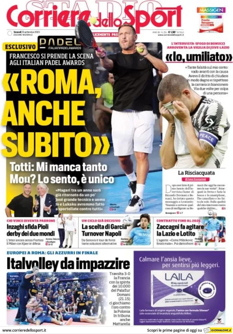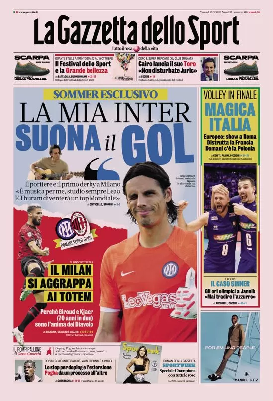 Le prime pagine dei quotidiani sportivi in edicola venerdì 15 settembre