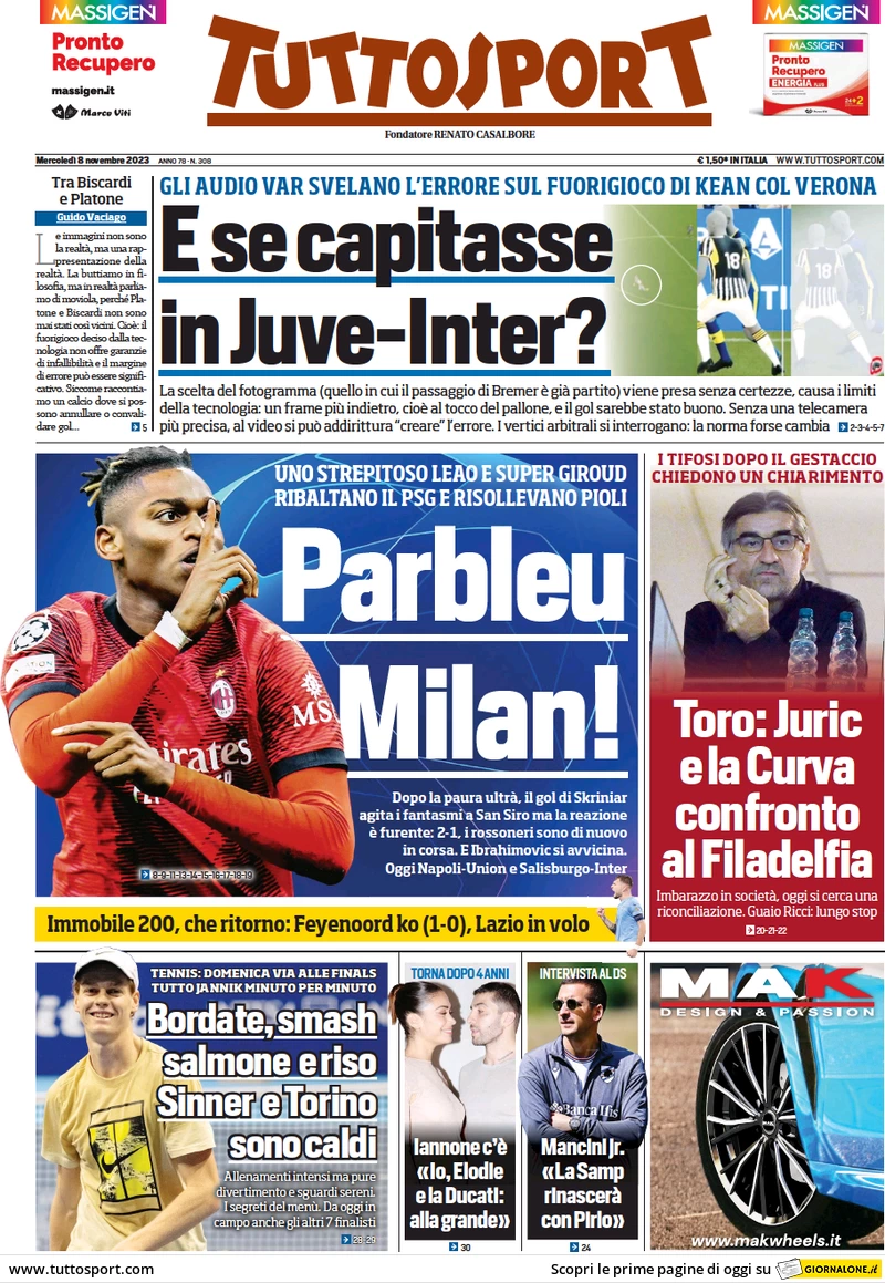 Le prime pagine dei quotidiani sportivi in edicola mercoledì 8 novembre