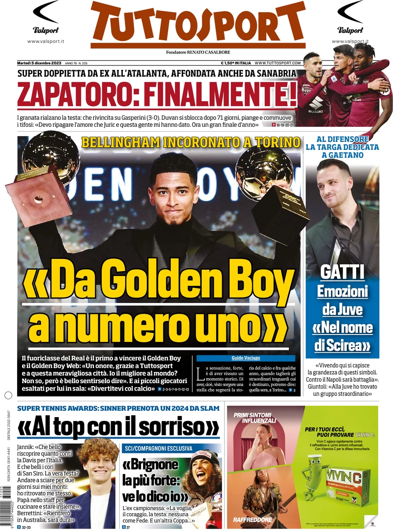 Le prime pagine dei quotidiani sportivi in edicola martedì 5 dicembre
