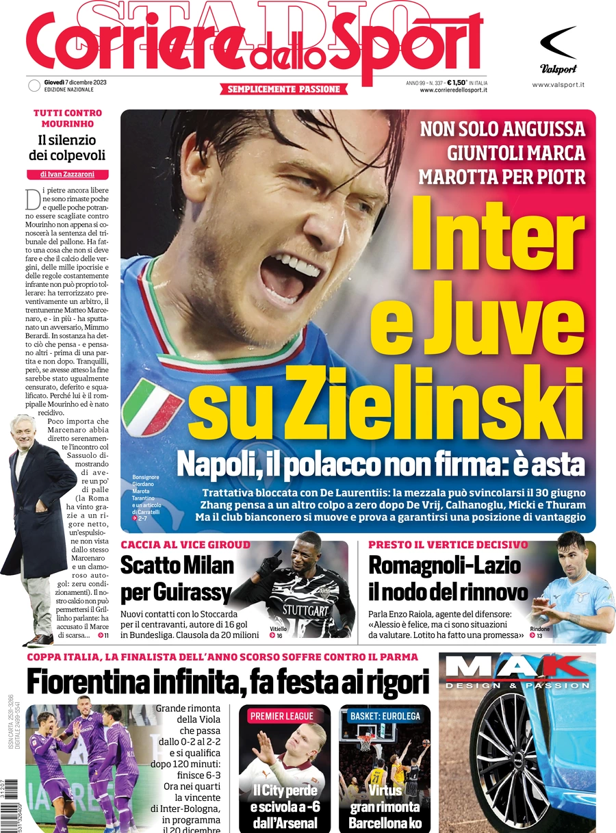 La redazione di calciocatanzaro.it propone ai lettori le prime pagine dei tre quotidiani sportivi in edicola oggi, giovedì 7 dicembre