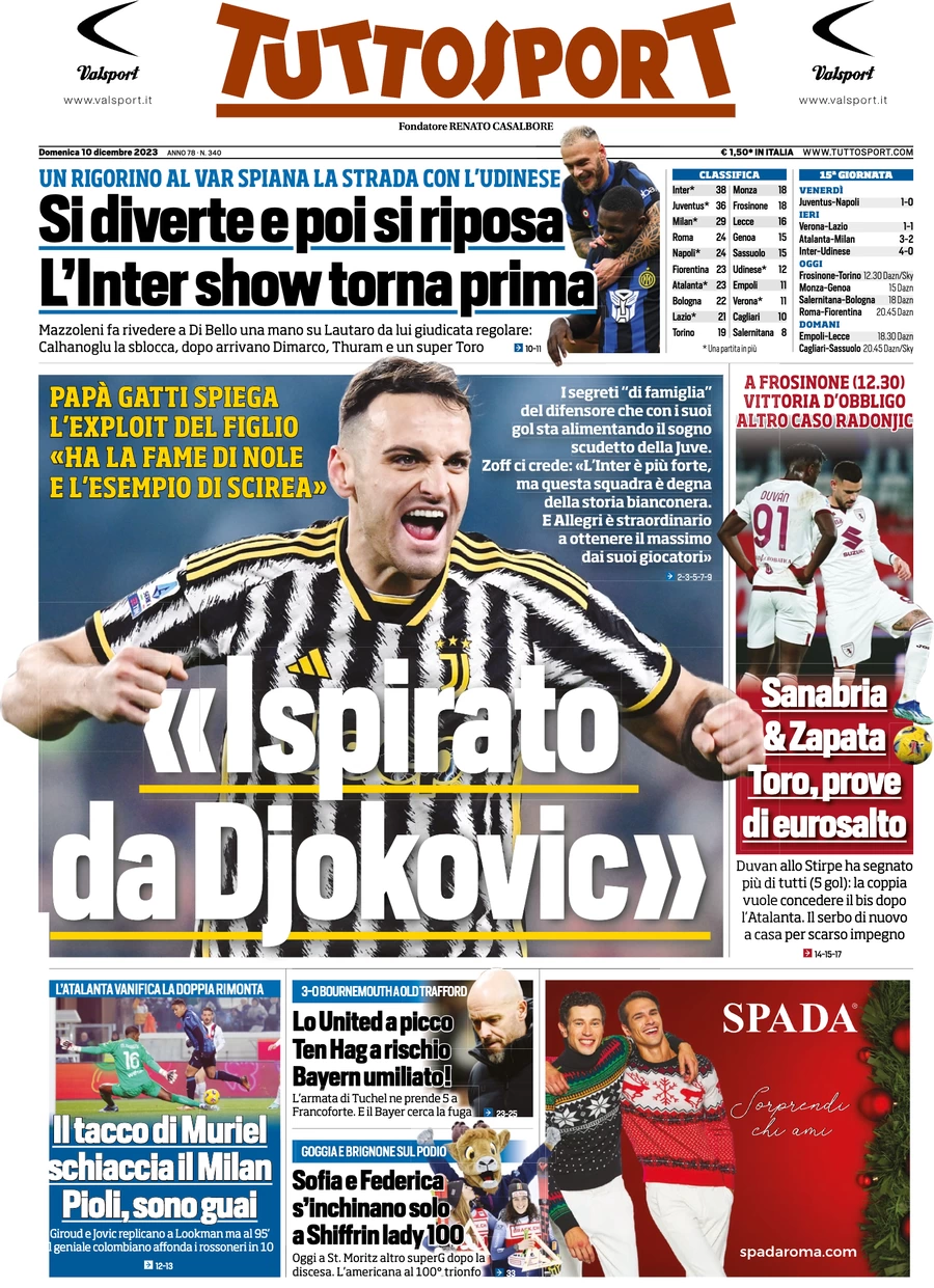 Le prime pagine dei quotidiani sportivi in edicola domenica 10 dicembre
