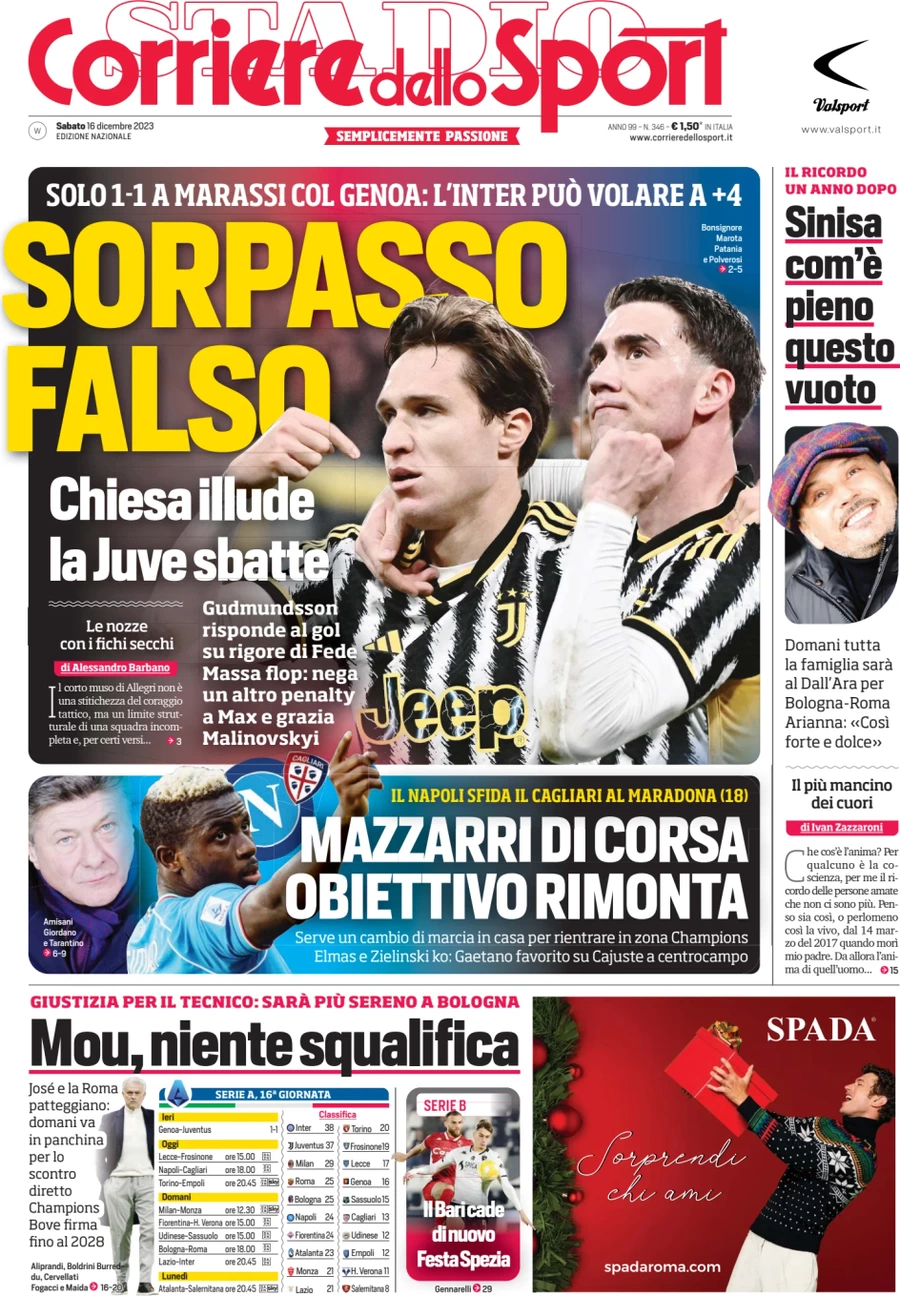 Le prime pagine dei quotidiani sportivi in edicola sabato 16 dicembre