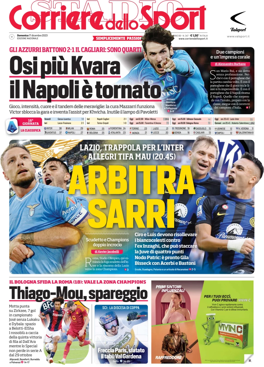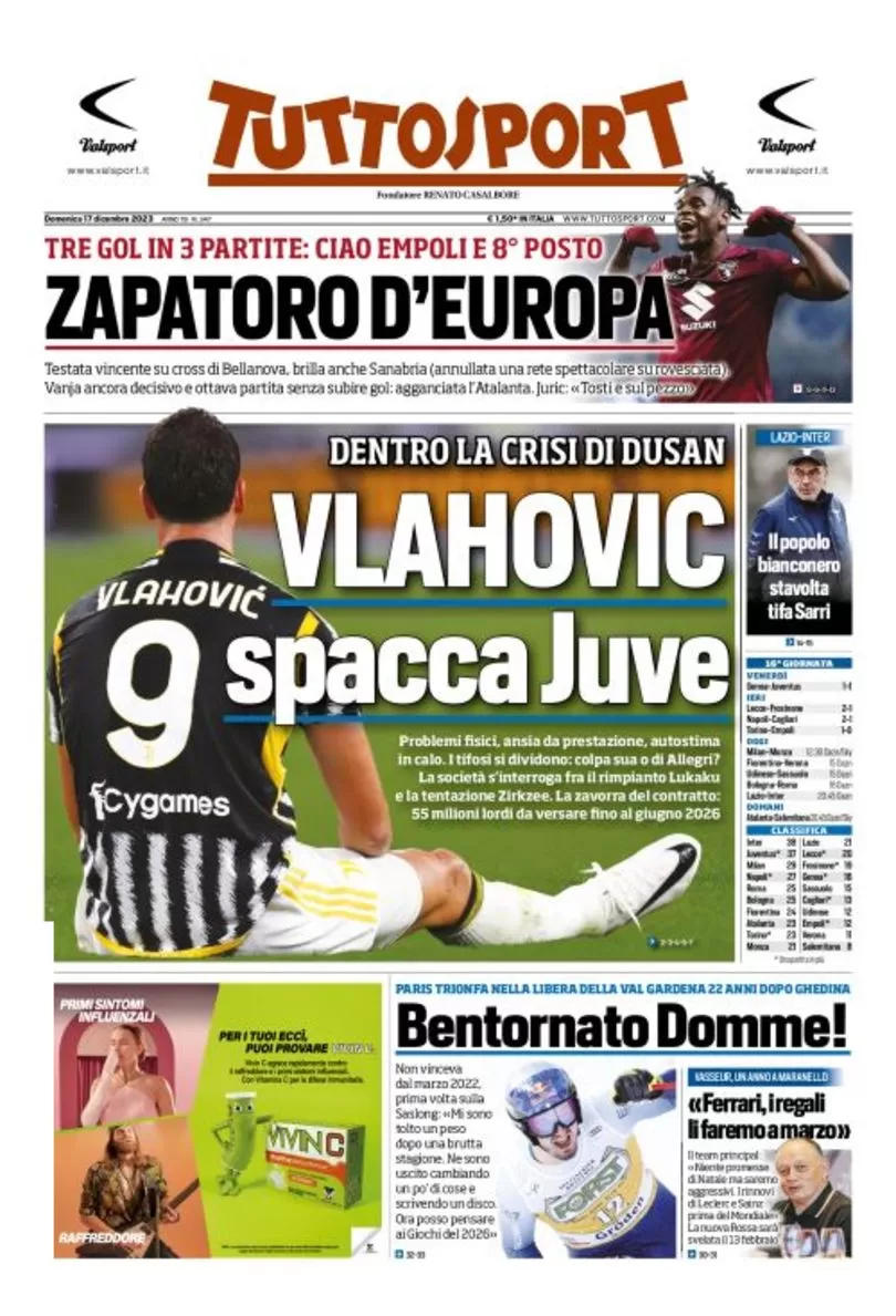 Le prime pagine dei quotidiani sportivi in edicola domenica 17 dicembre