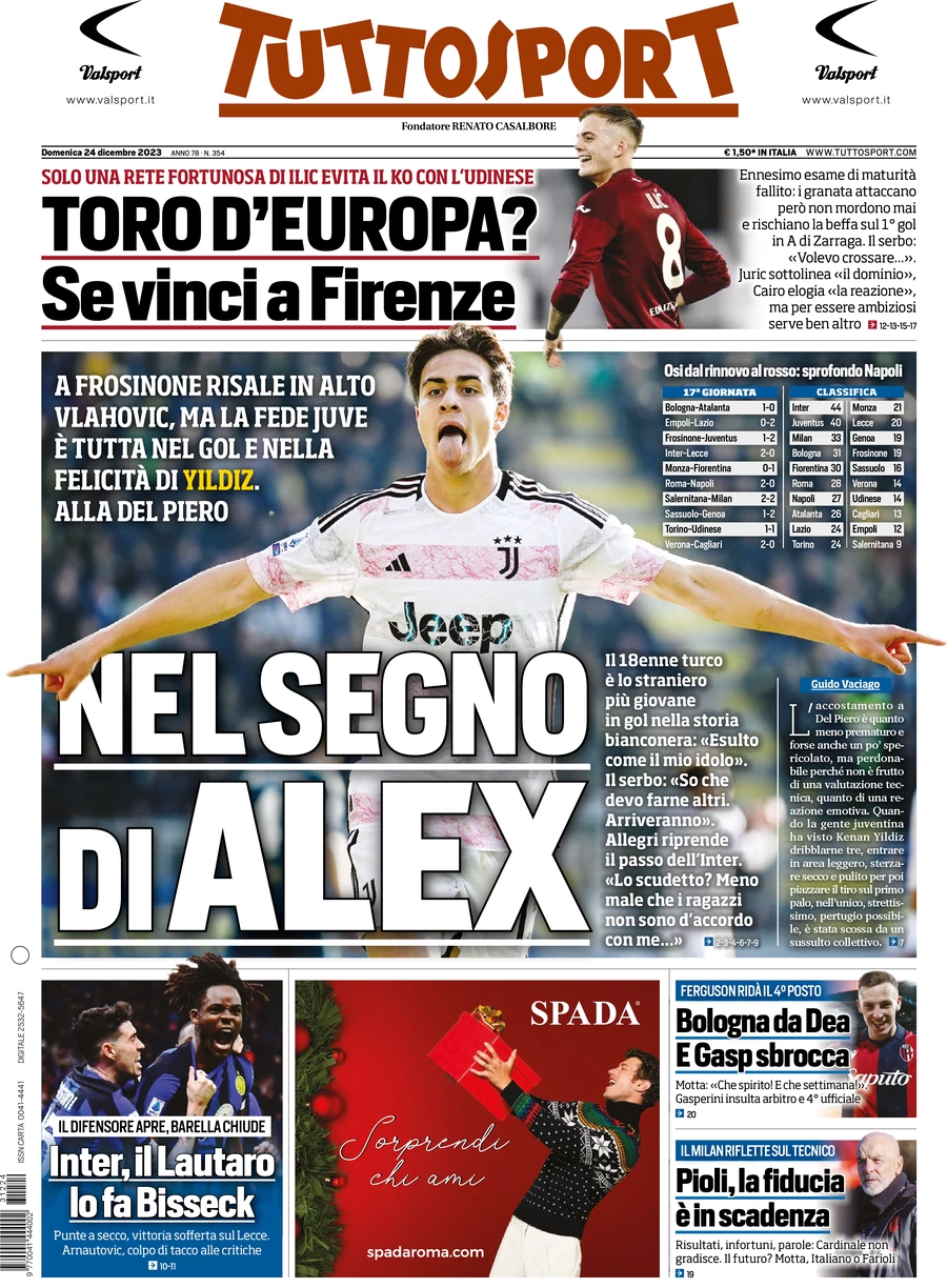 Le prime pagine dei quotidiani sportivi in edicola domenica 24 dicembre
