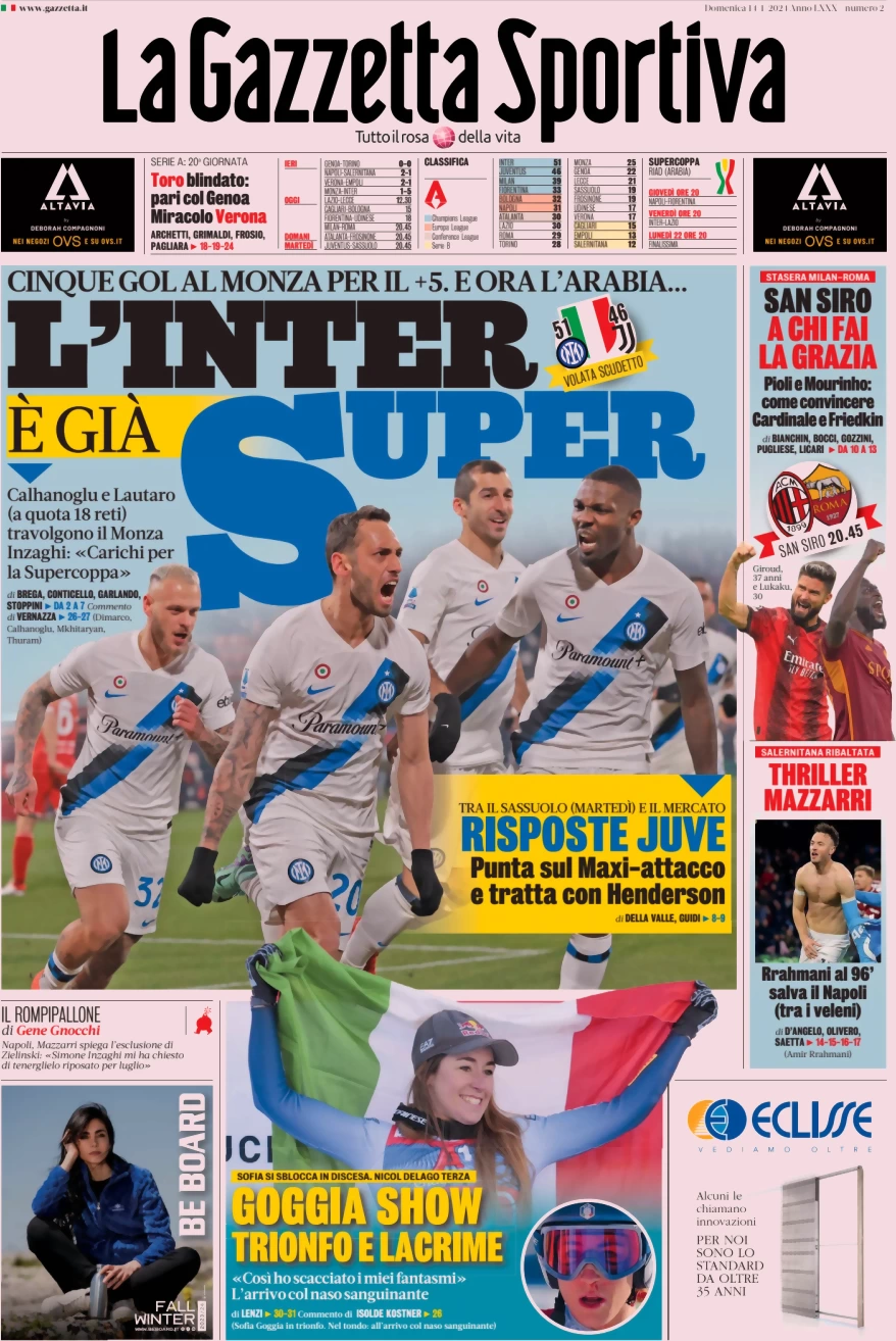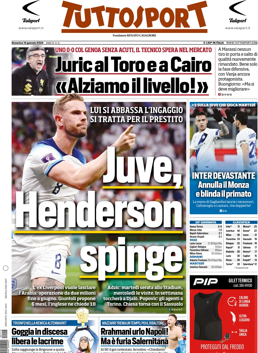 Le prime pagine dei quotidiani sportivi in edicola domenica 14 gennaio