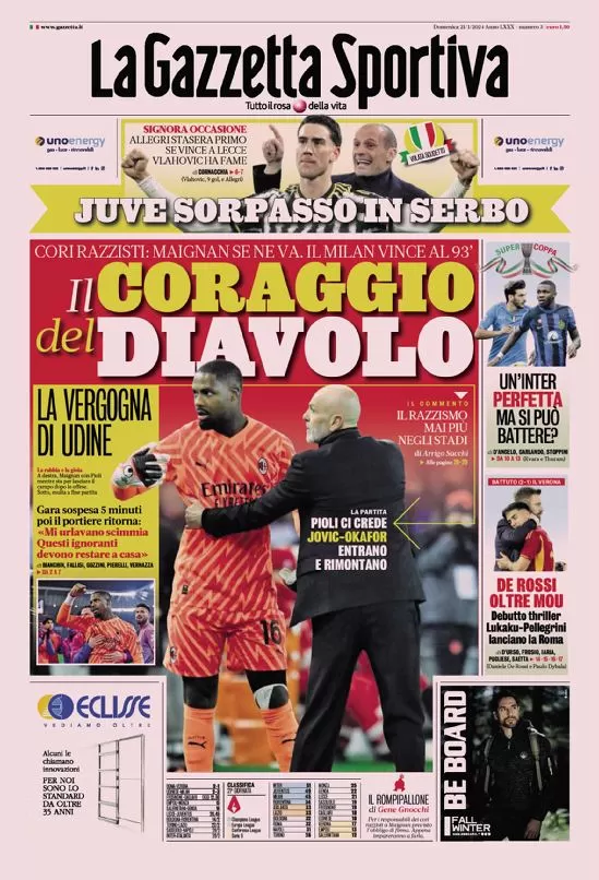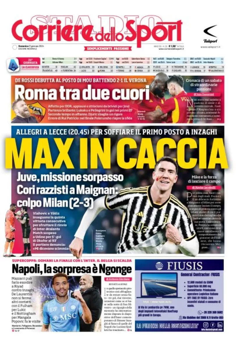 Le prime pagine dei quotidiani sportivi in edicola domenica 21 gennaio