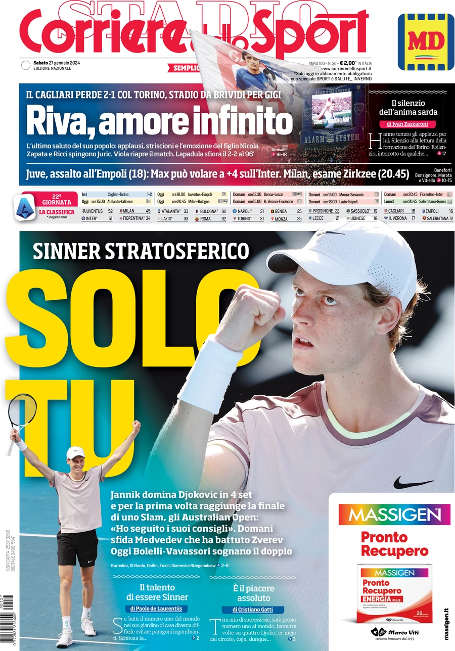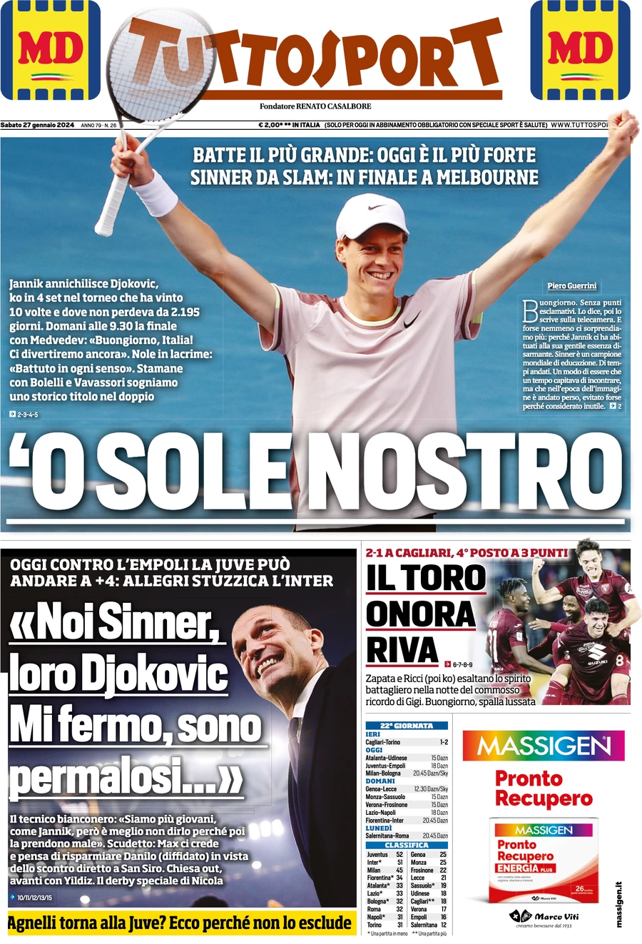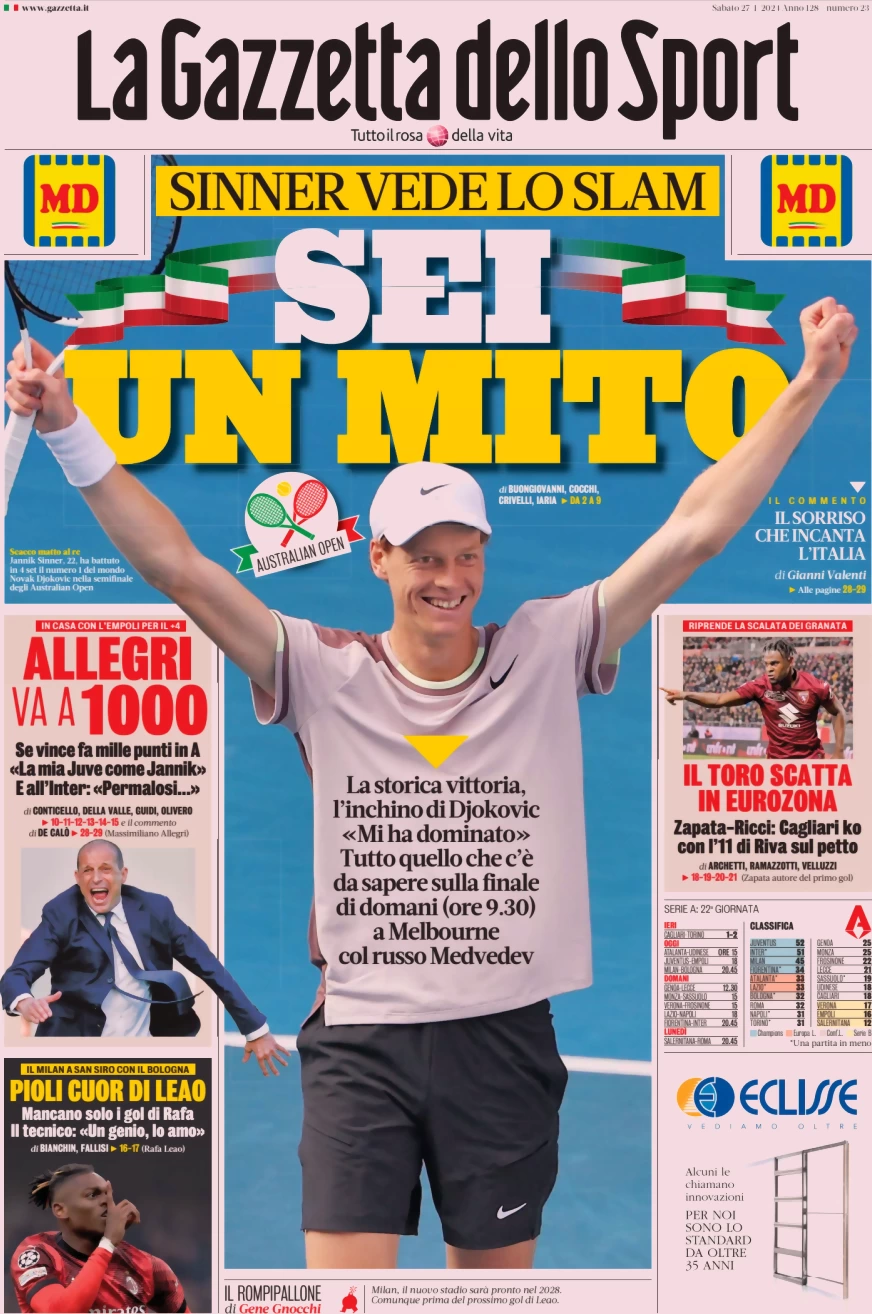 Le prime pagine dei quotidiani sportivi in edicola sabato 27 gennaio