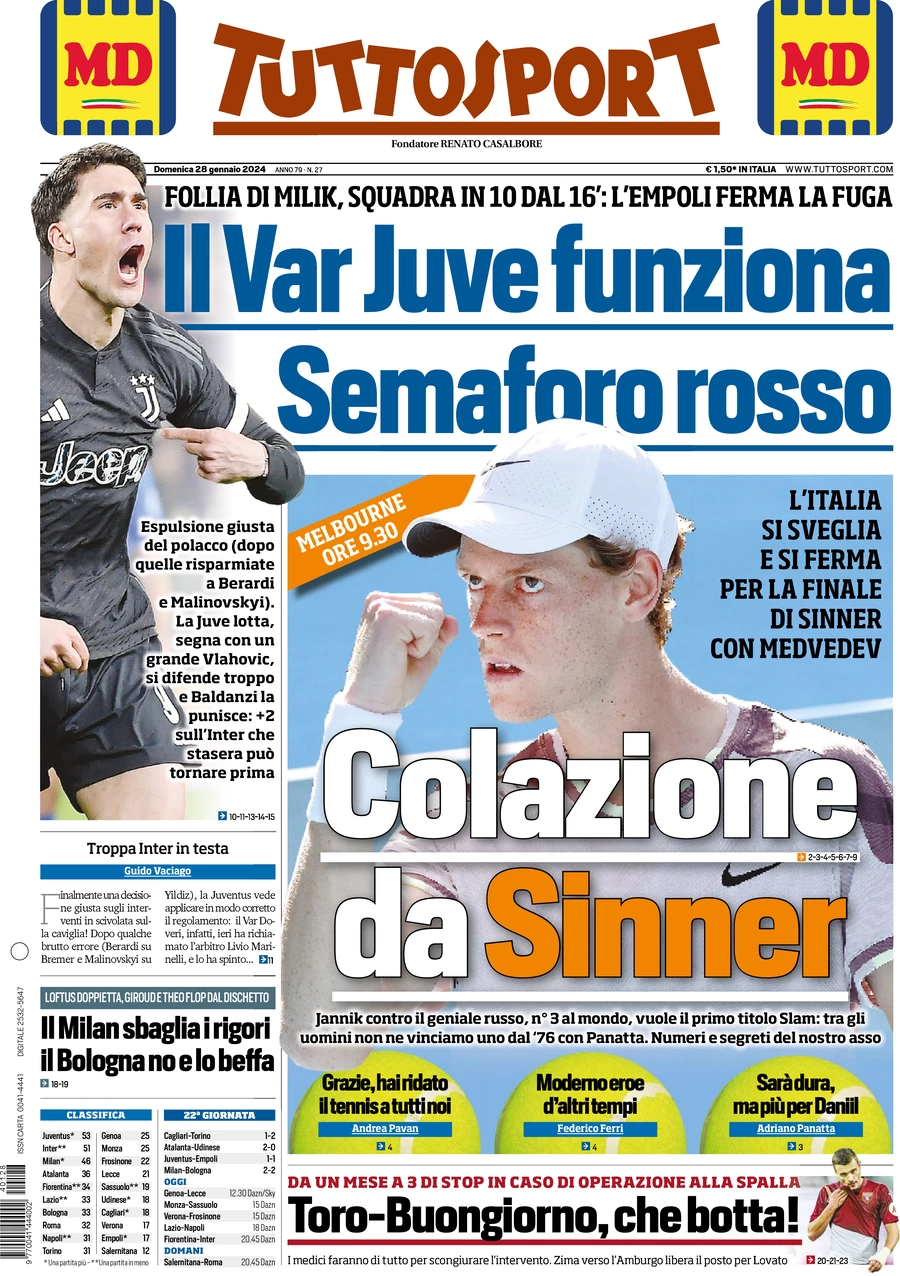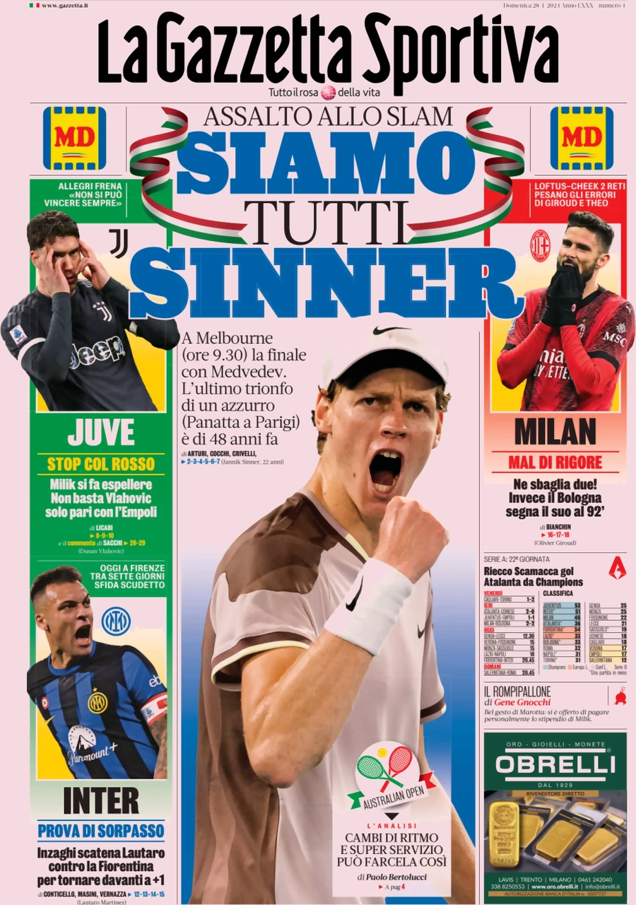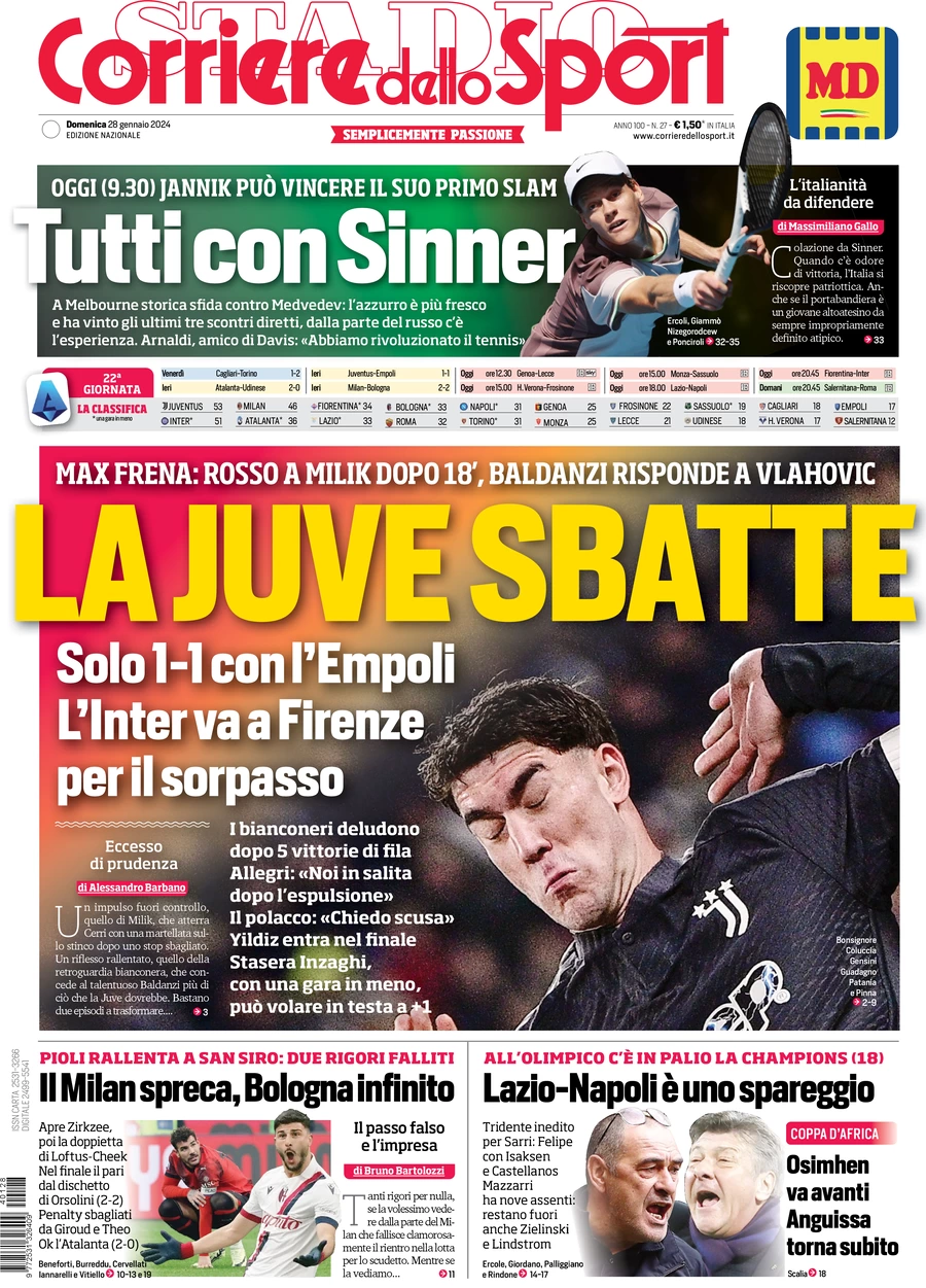 Le prime pagine dei quotidiani sportivi in edicola domenica 28 gennaio