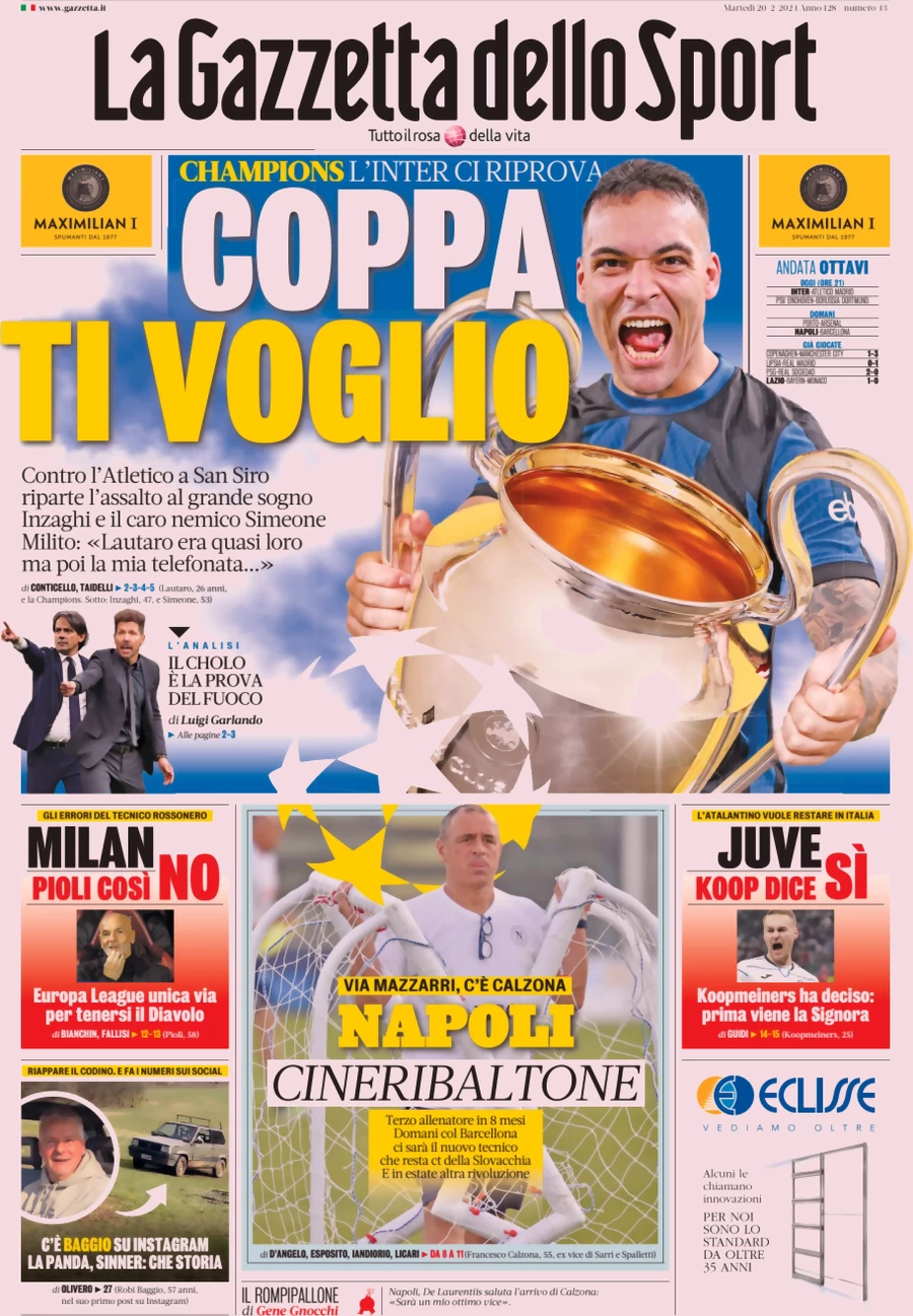 Le prime pagine dei quotidiani sportivi in edicola martedì 20 febbraio