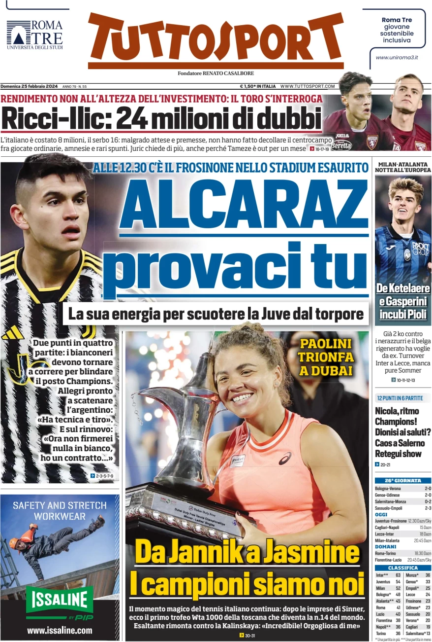 Le prime pagine dei quotidiani sportivi in edicola domenica 25 febbraio