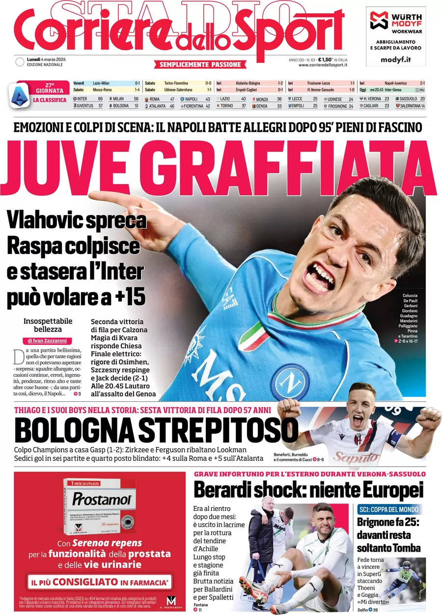 La redazione di calciocatanzaro.it propone ai lettori le prime pagine dei tre quotidiani sportivi in edicola oggi, lunedì 4 marzo 2024