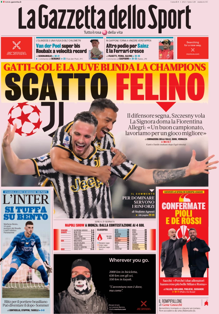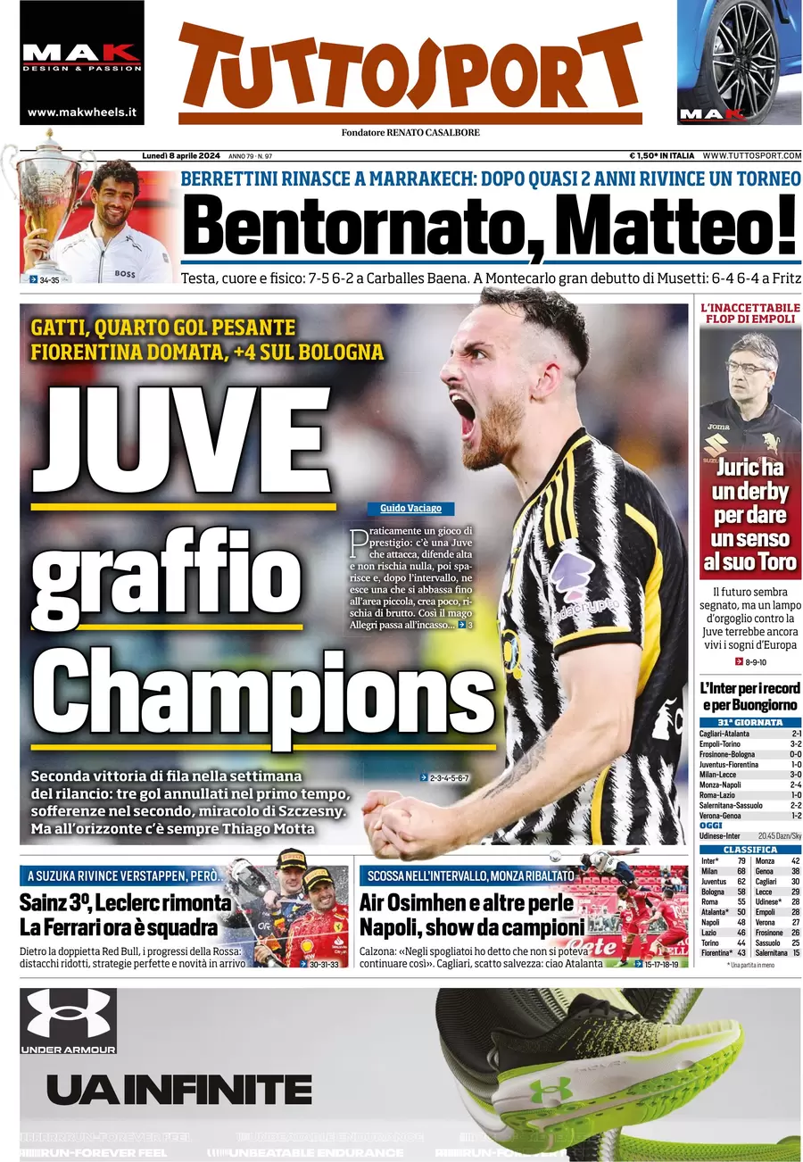 Le prime pagine dei quotidiani sportivi in edicola lunedì 8 aprile