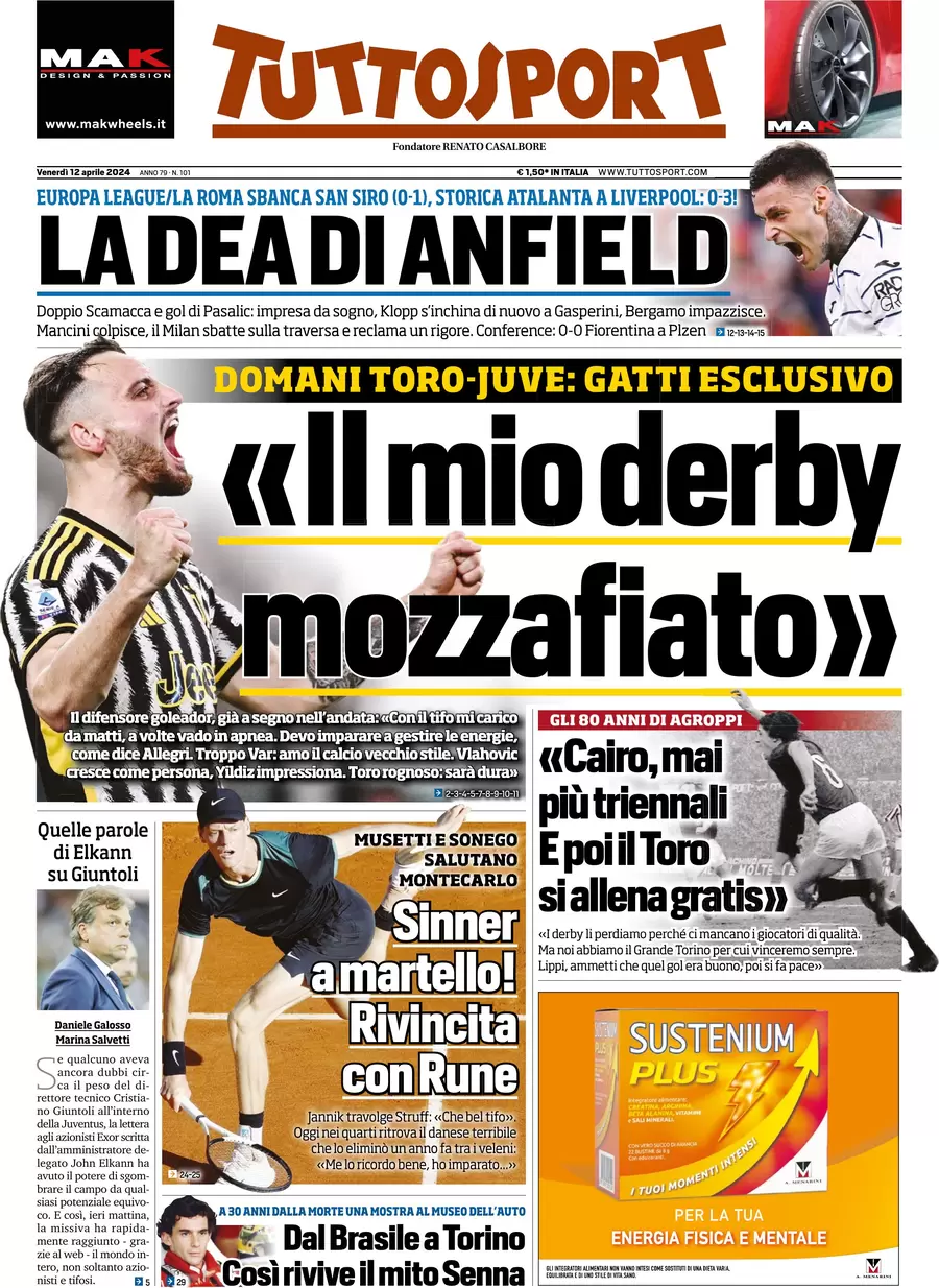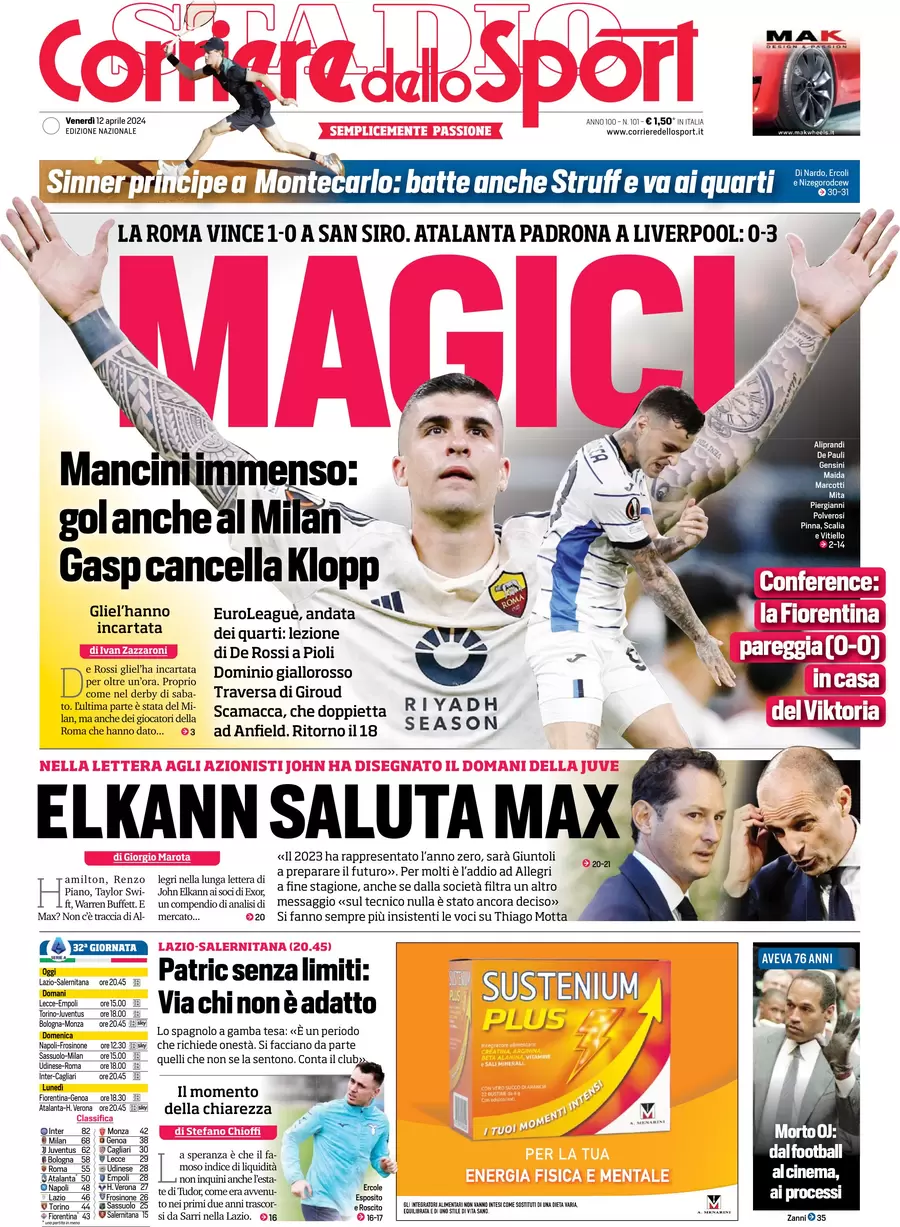 La redazione di calciocatanzaro.it propone ai lettori le prime pagine dei tre quotidiani sportivi in edicola oggi, venerdì 12 aprile 2024