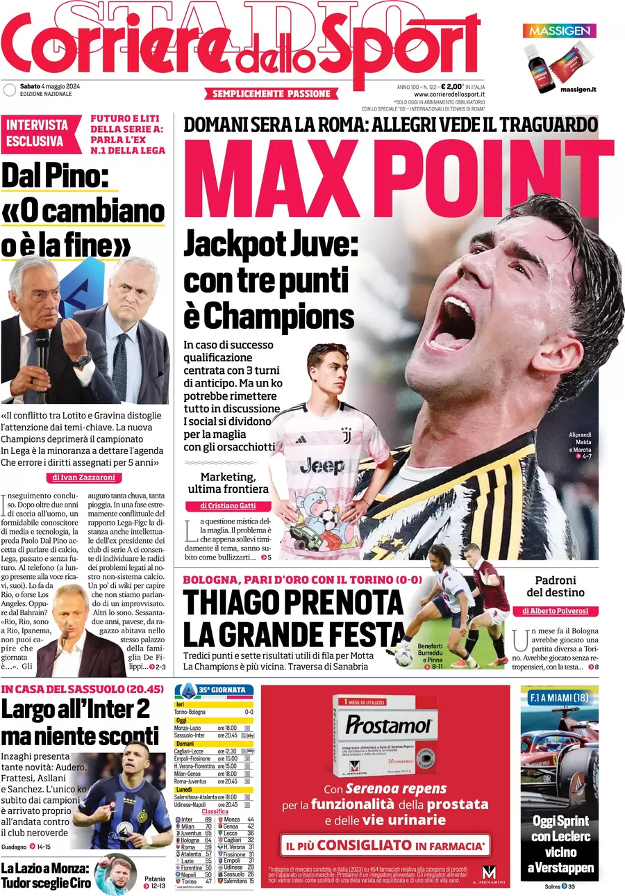 Le prime pagine dei quotidiani sportivi in edicola sabato 4 maggio