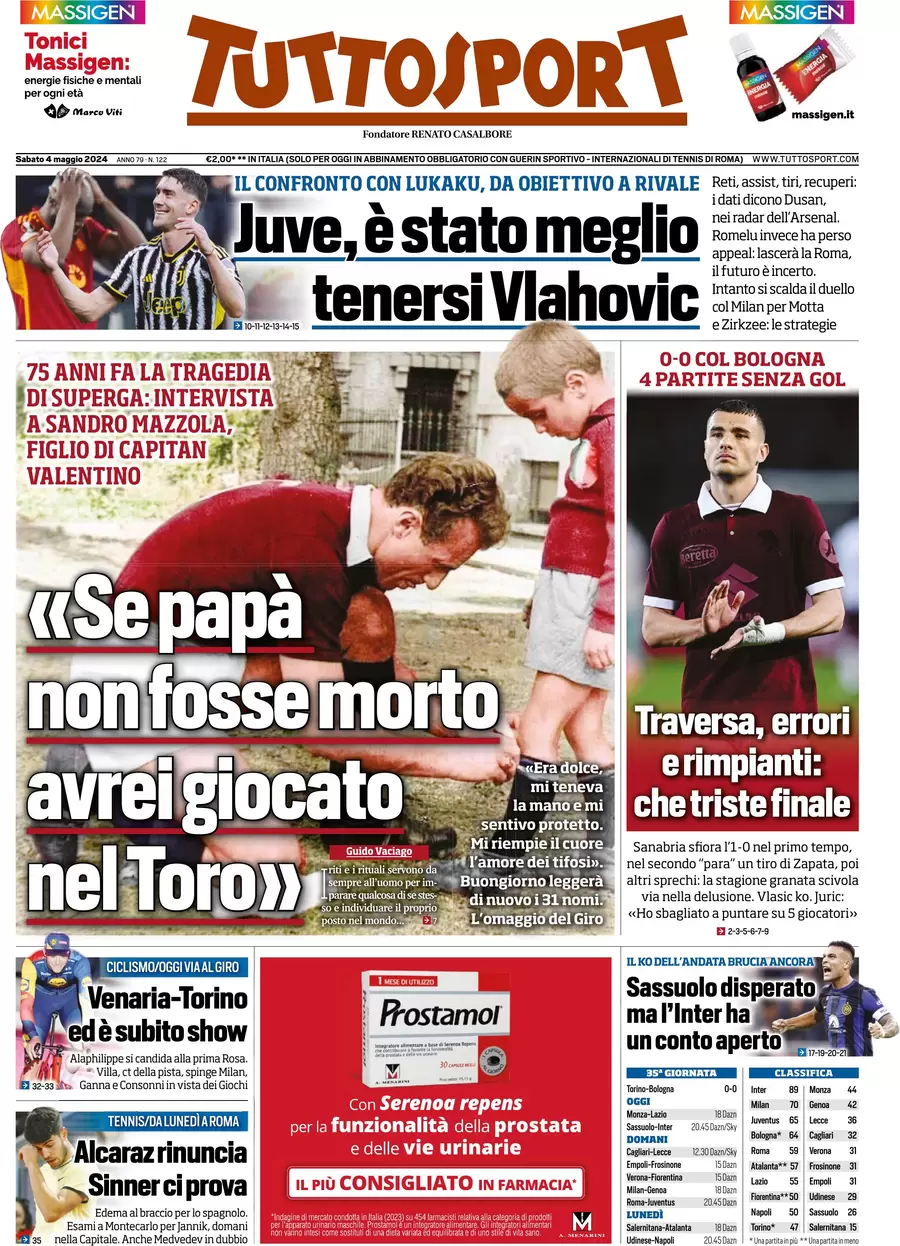 La redazione di calciocatanzaro.it propone ai lettori le prime pagine dei tre quotidiani sportivi in edicola oggi, sabato 4 maggio 2024