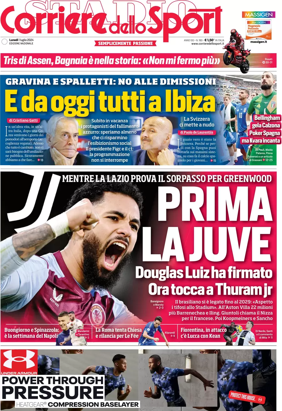 La redazione di calciocatanzaro.it propone ai lettori le prime pagine dei tre quotidiani sportivi in edicola oggi, lunedì 1 luglio 2024