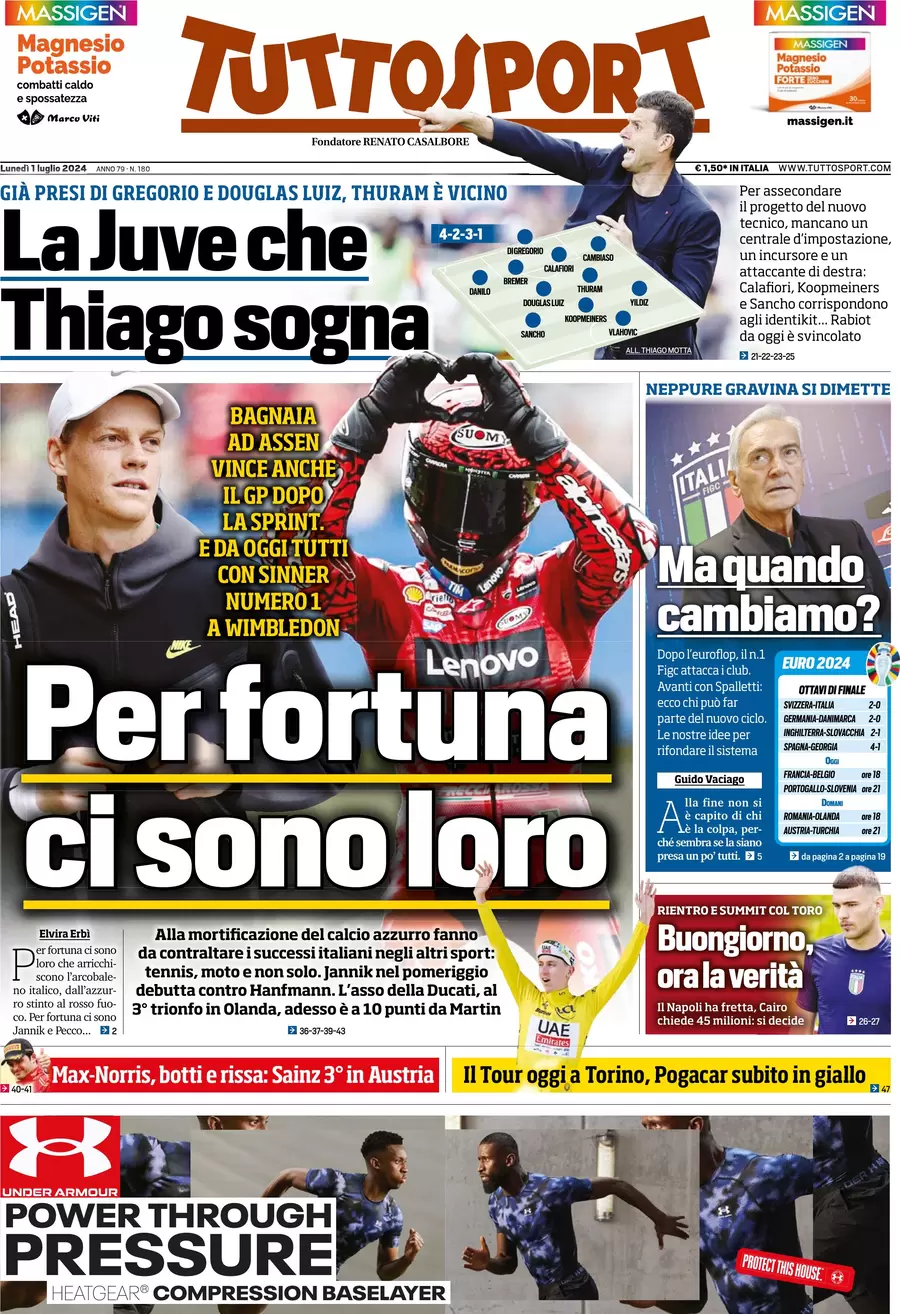 Le prime pagine dei quotidiani sportivi in edicola lunedì 1 luglio