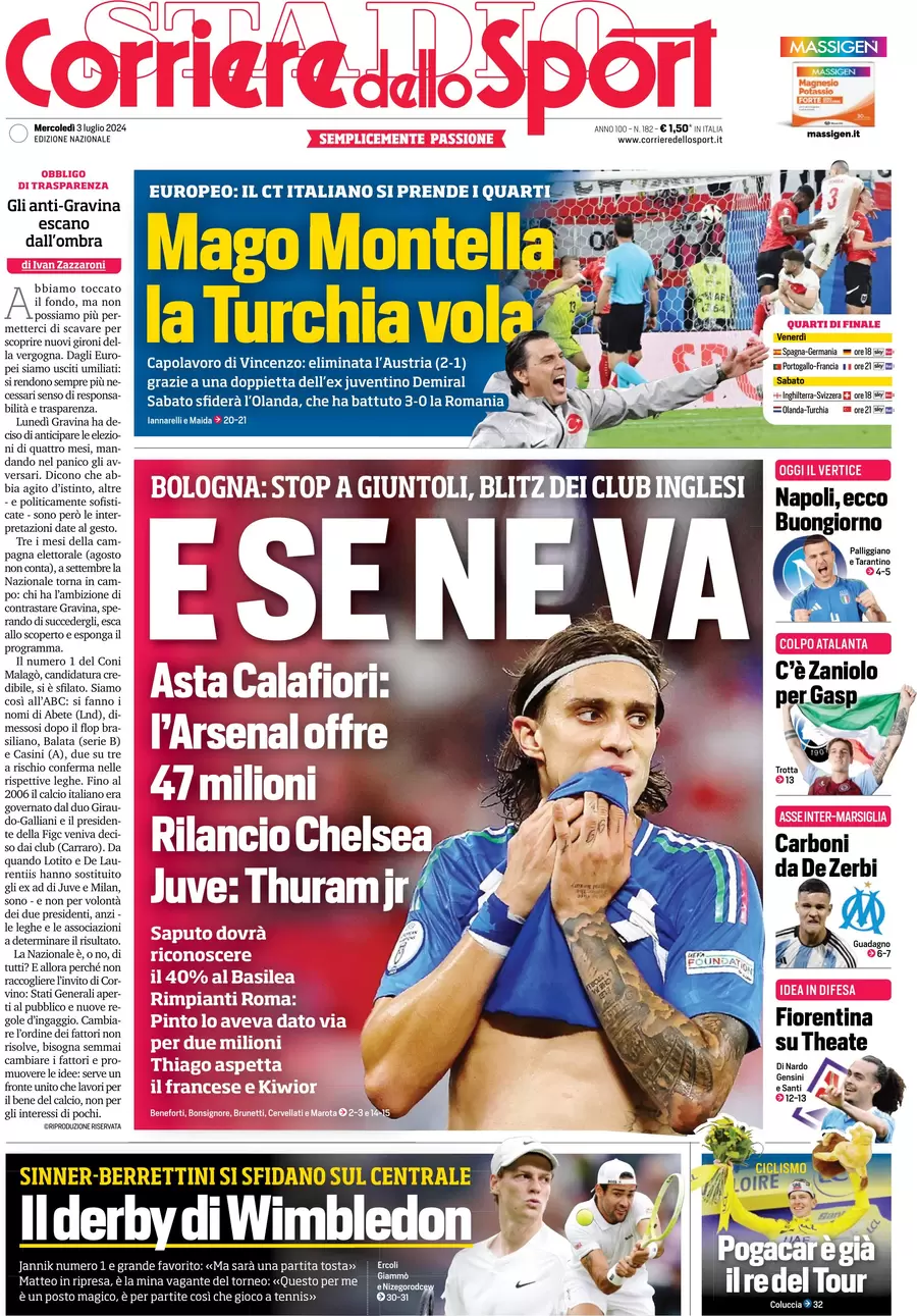 La redazione di calciocatanzaro.it propone ai lettori le prime pagine dei tre quotidiani sportivi in edicola oggi, mercoledì 3 luglio 2024