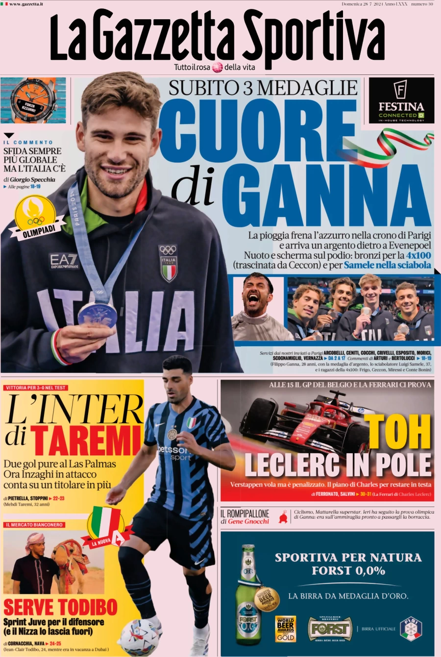Le prime pagine dei quotidiani sportivi in edicola domenica 28 luglio