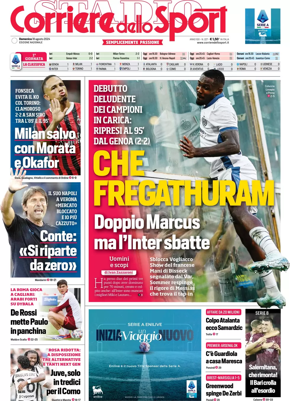 La redazione di calciocatanzaro.it propone ai lettori le prime pagine dei tre quotidiani sportivi in edicola oggi, lunedì 19 agosto 2024