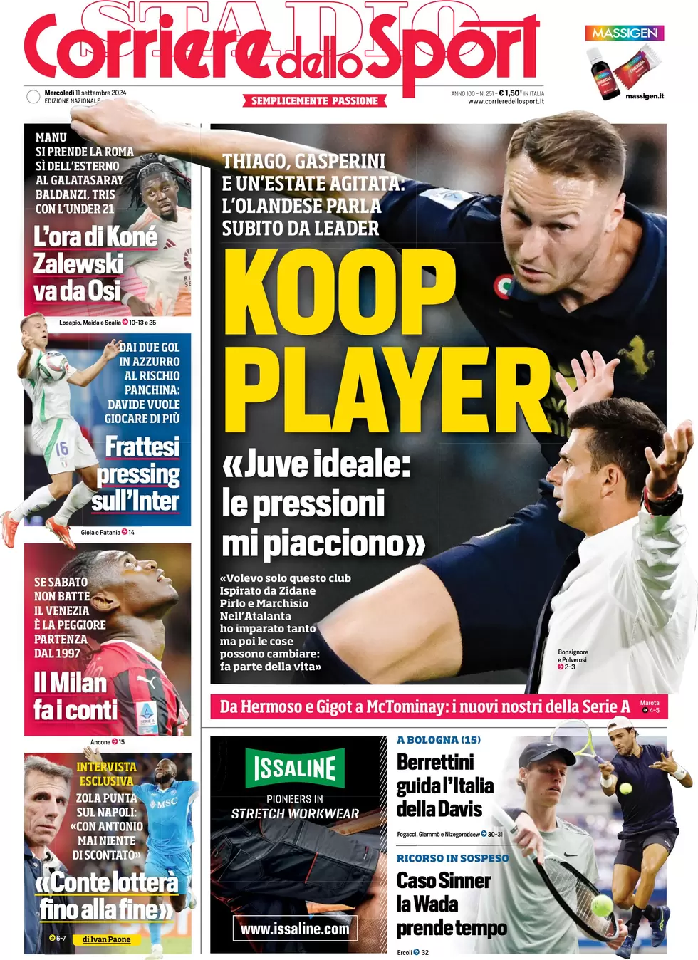 Le prime pagine dei quotidiani sportivi in edicola mercoledì 11 settembre