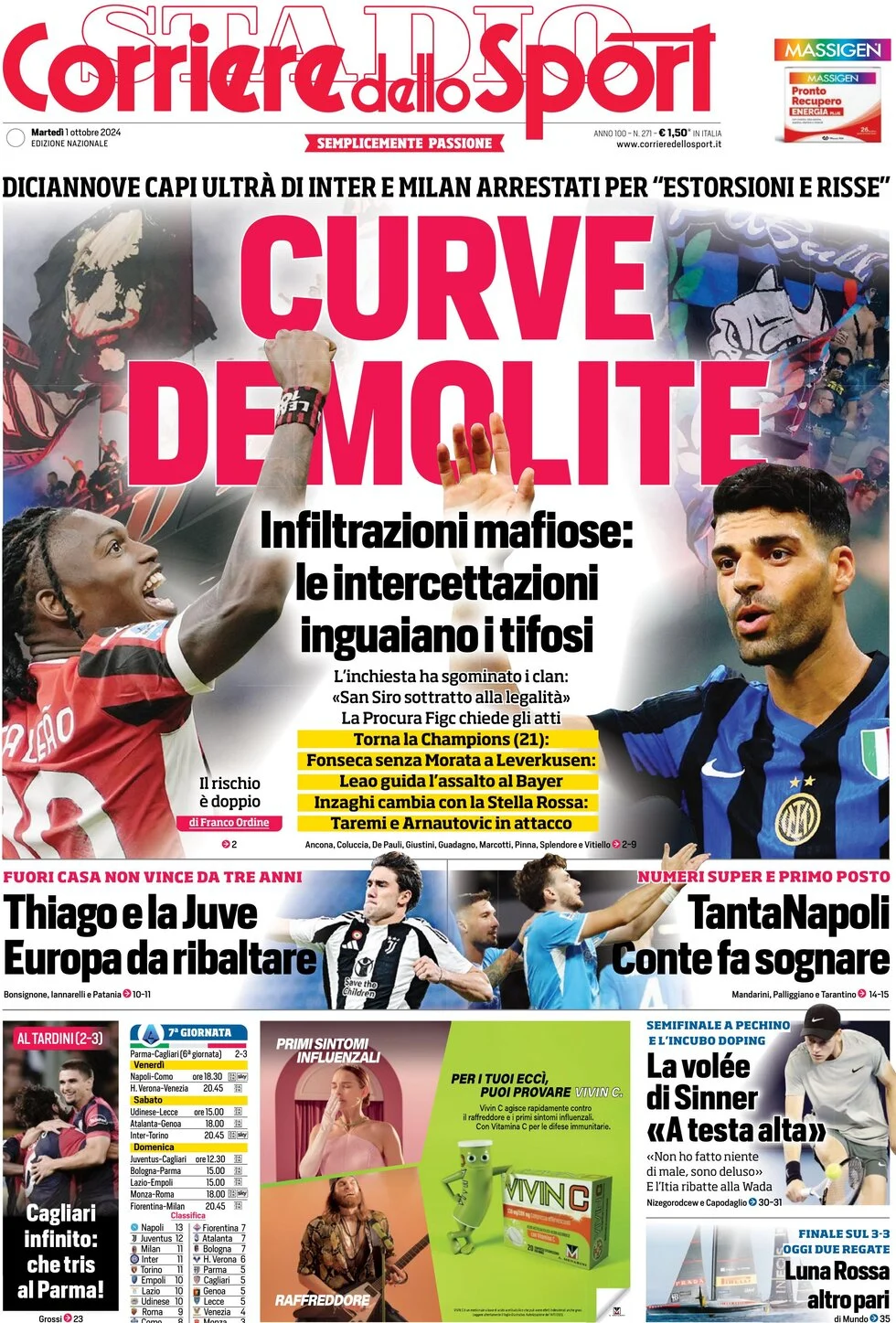 La redazione di calciocatanzaro propone ai lettori le prime pagine dei tre quotidiani sportivi in edicola oggi, martedì 1 ottobre 2024