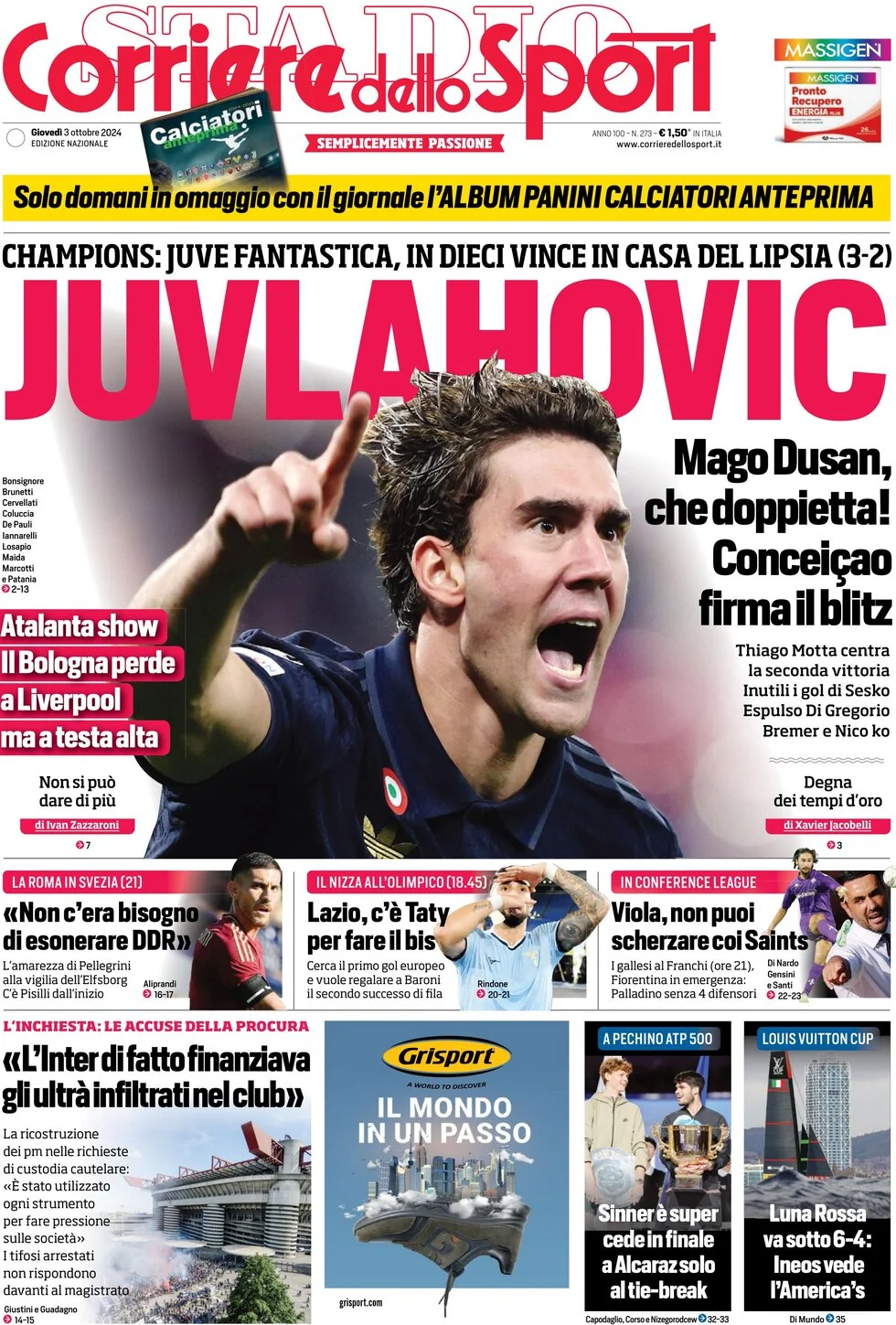 La redazione di calciocatanzaro propone ai lettori le prime pagine dei tre quotidiani sportivi in edicola oggi, giovedì 3 ottobre 2024