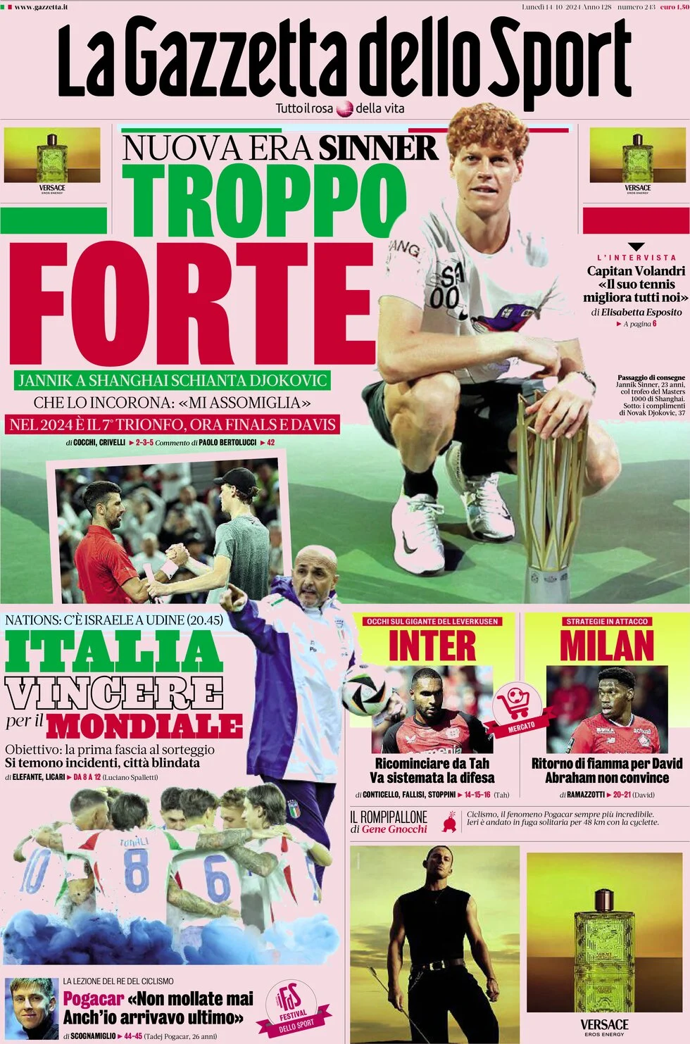 Le prime pagine dei quotidiani sportivi in edicola lunedì 14 ottobre