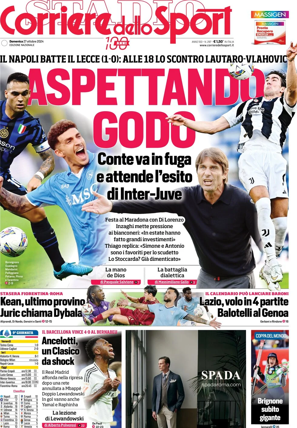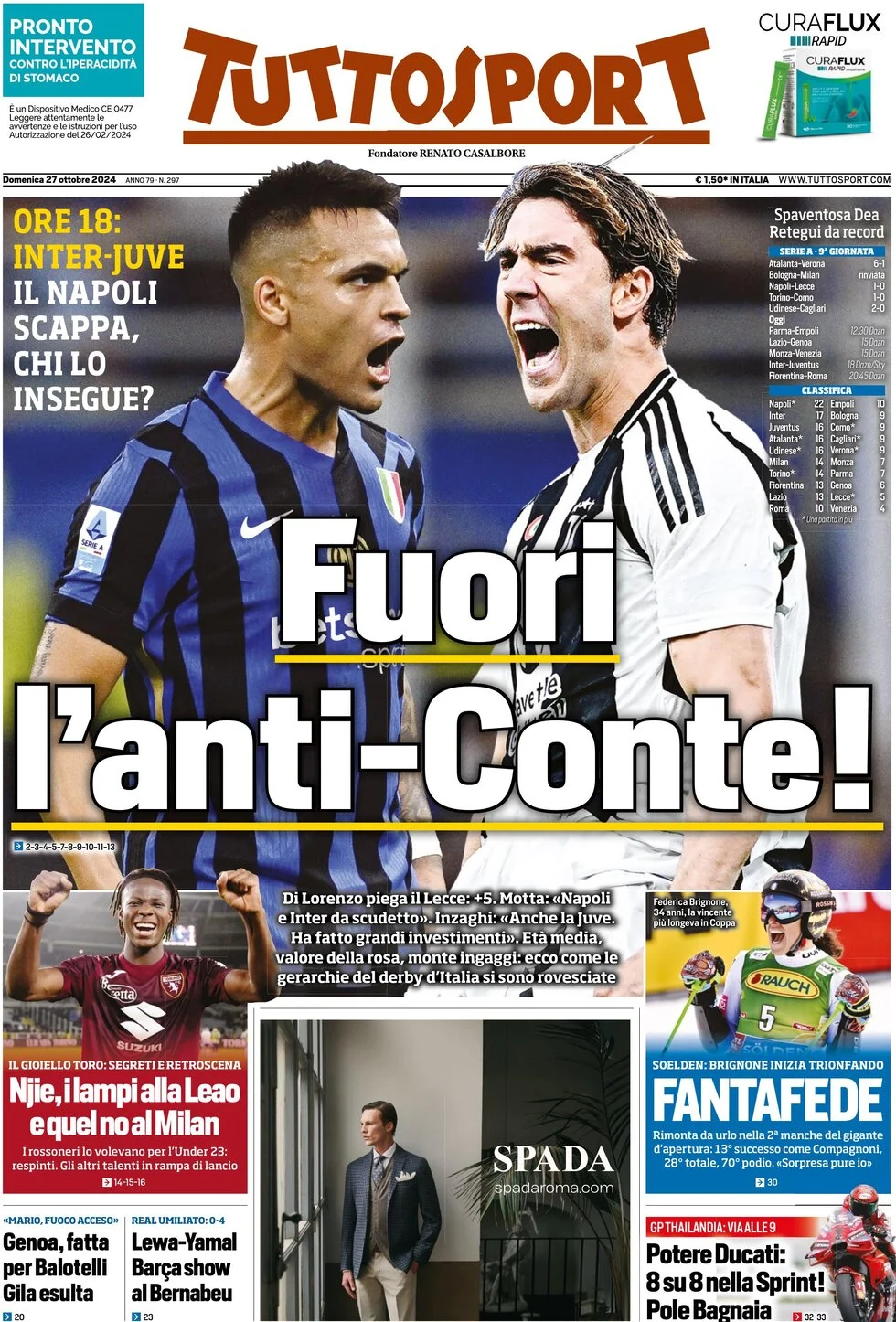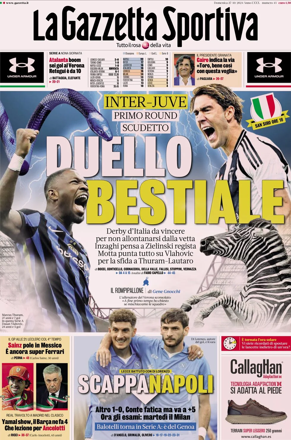 Le prime pagine dei quotidiani sportivi in edicola domenica 27 ottobre