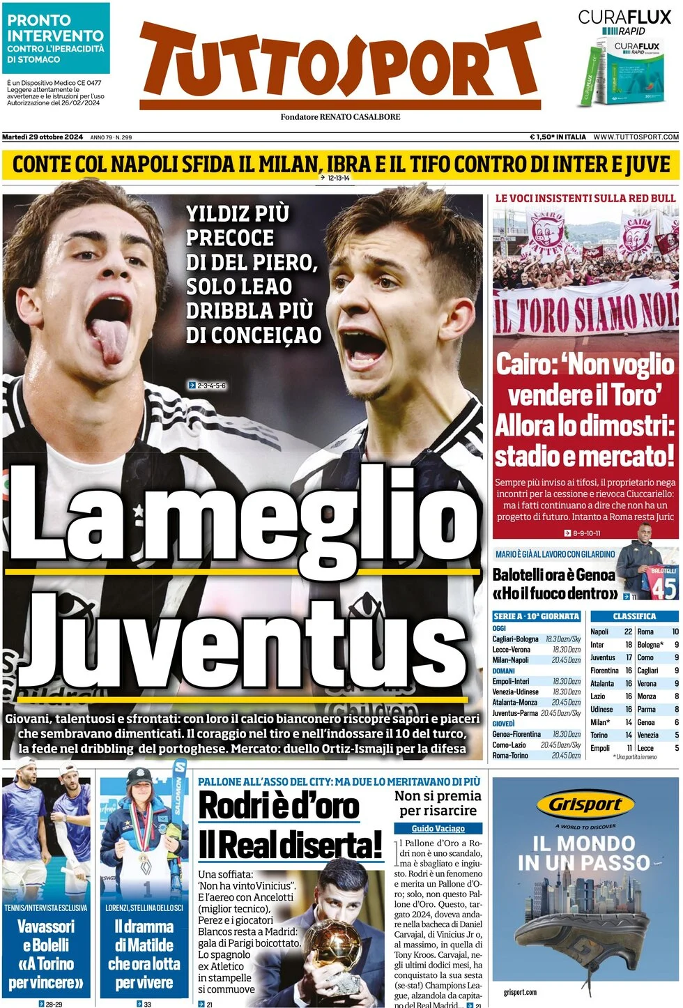La redazione di calciocatanzaro propone ai lettori le prime pagine dei tre quotidiani sportivi in edicola oggi, martedì 29 ottobre 2024