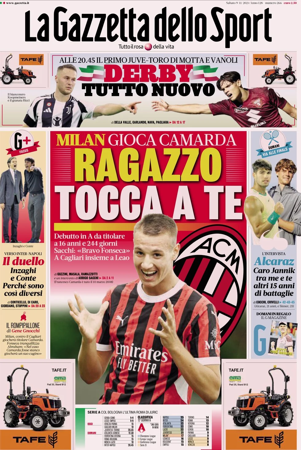 La redazione di calciocatanzaro propone ai lettori le prime pagine dei tre quotidiani sportivi in edicola oggi, sabato 9 novembre 2024