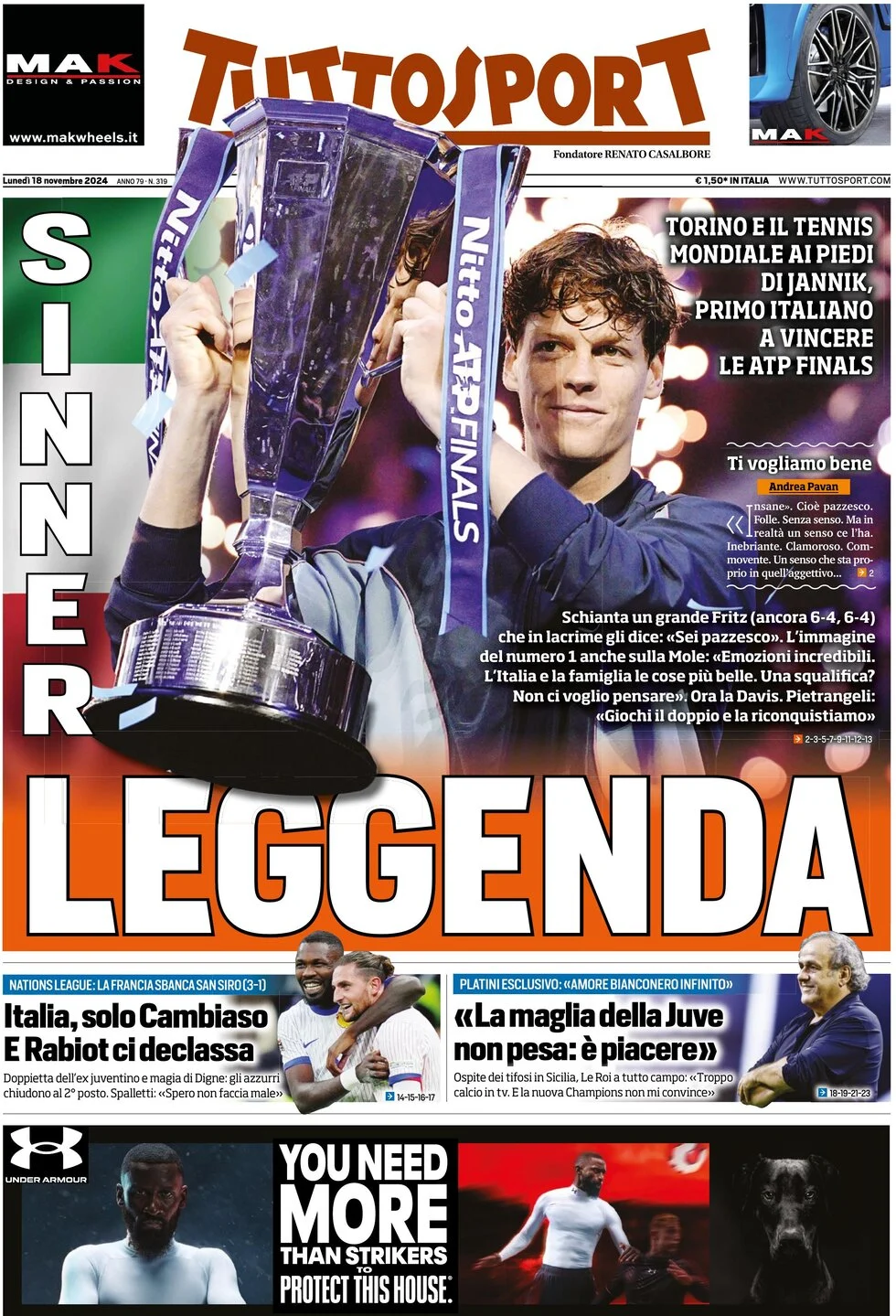 La redazione di calciocatanzaro propone ai lettori le prime pagine dei tre quotidiani sportivi in edicola oggi, lunedì 18 novembre 2024