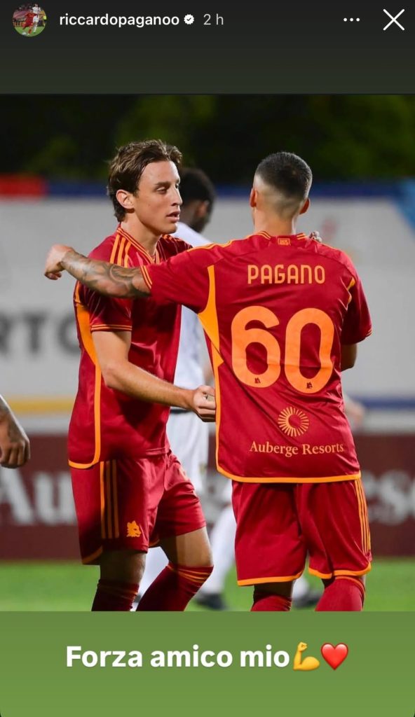 Molte societĆ hanno manifestato la propria vicinanza all’ex giallorosso e tra queste c’ĆØ anche il Catanzaro. “Anche noi siamo con te. Forza Edo!”, ha scritto il club sui propri canali social. Significativo anche il post di Riccardo Pagano, che con Bove ha condiviso un’esperienza tra le file della Primavera della Roma: uno scatto che ritrae un abbraccio tra i due, corredato dal messaggio āForza amico mioā.