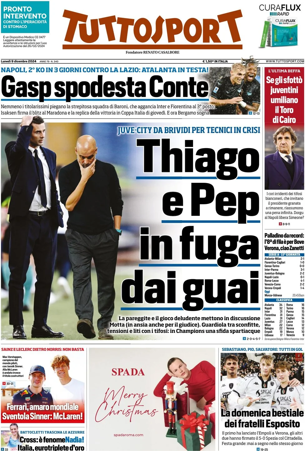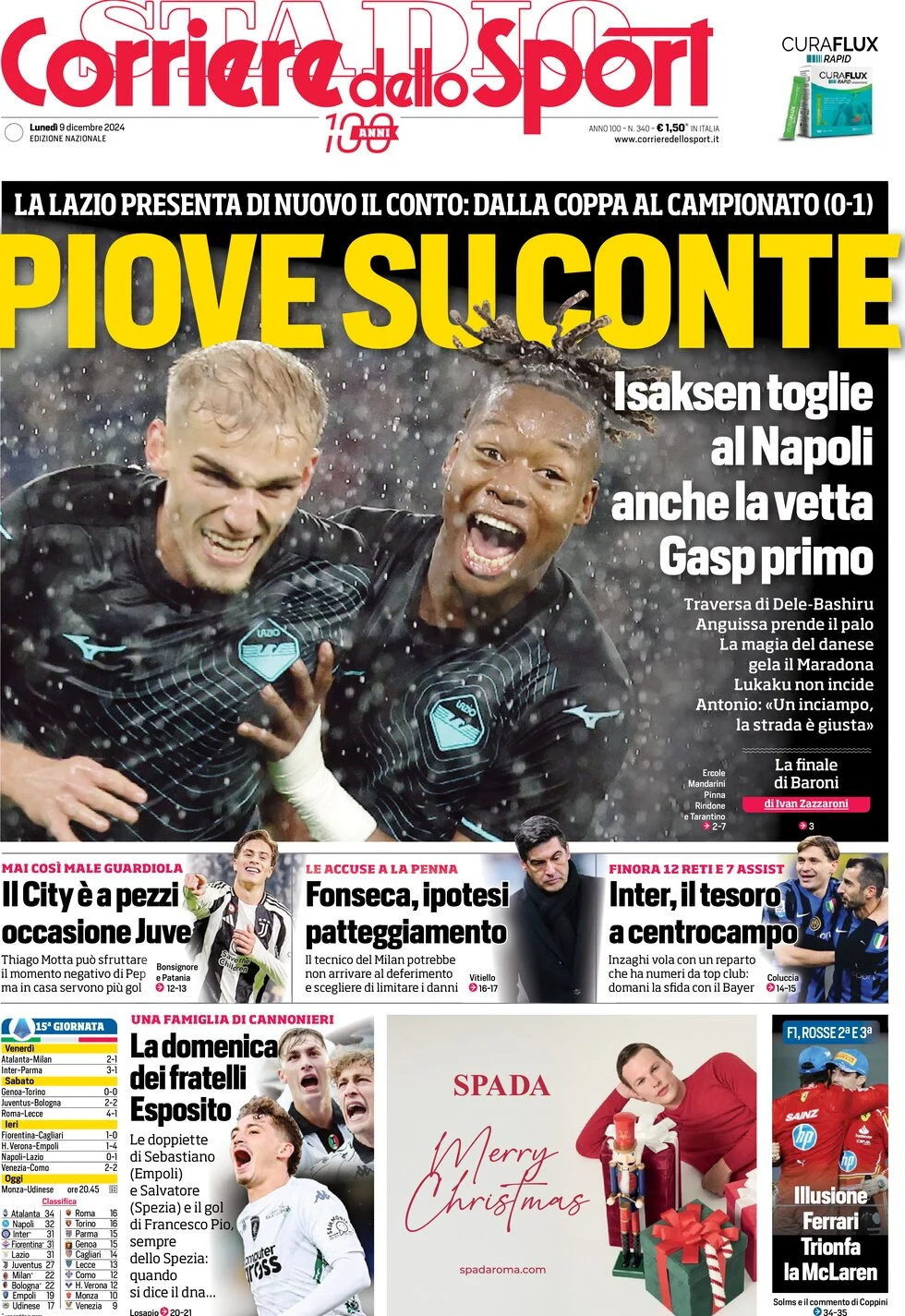 La redazione di calciocatanzaro propone ai lettori le prime pagine dei tre quotidiani sportivi in edicola oggi, lunedì 9 dicembre 2024