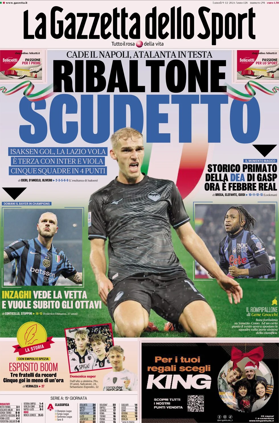 Le prime pagine dei quotidiani sportivi in edicola lunedì 9 dicembre