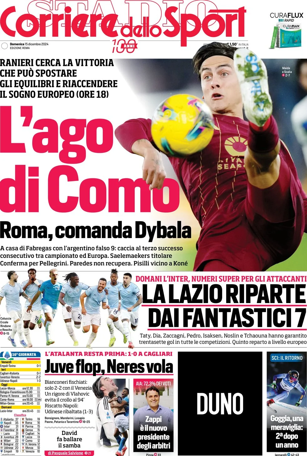 Le prime pagine dei quotidiani sportivi in edicola domenica 15 dicembre