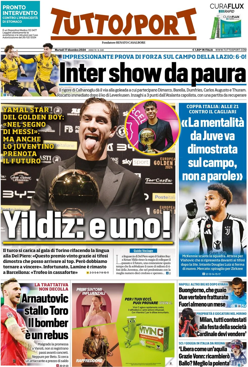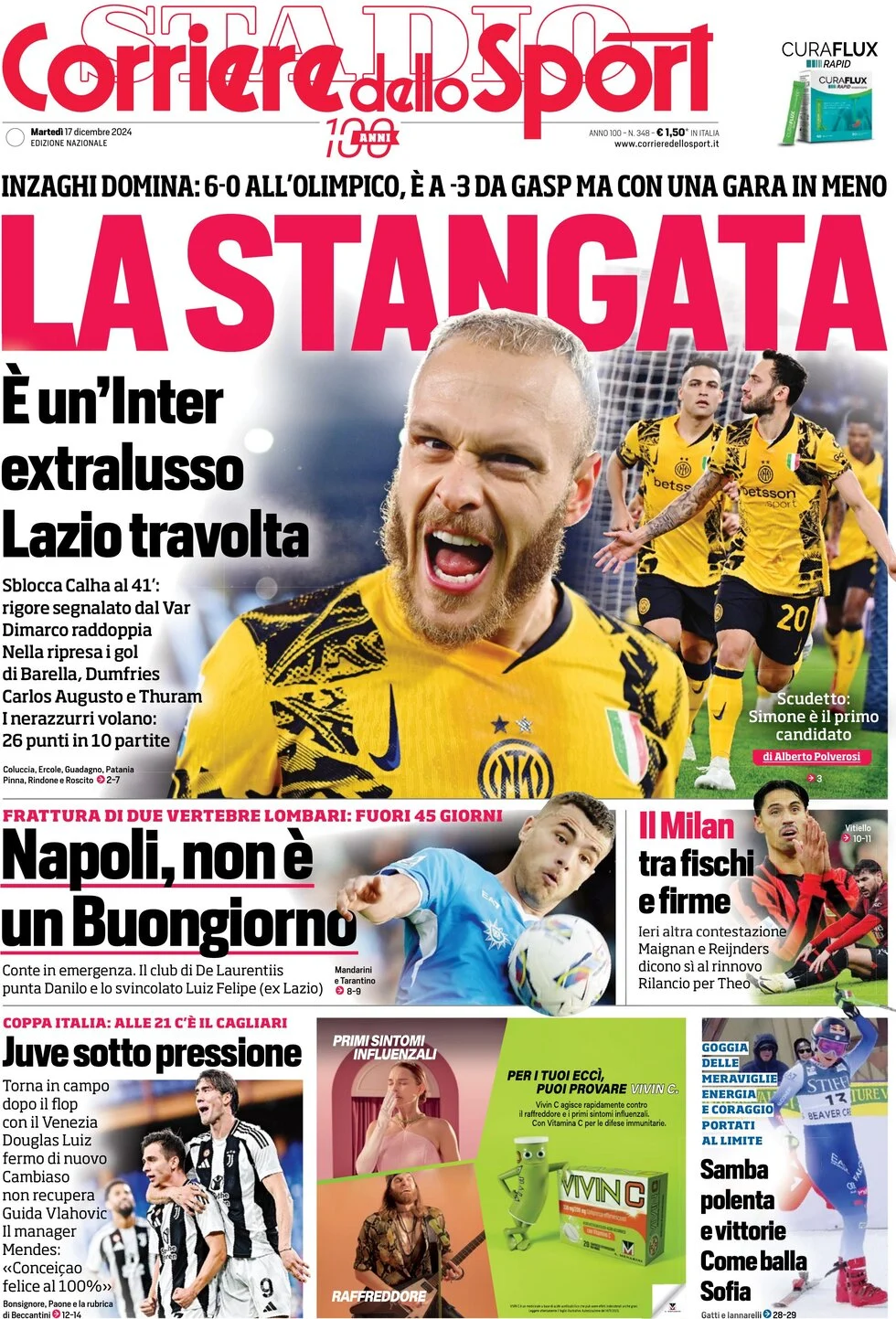 La redazione di calciocatanzaro propone ai lettori le prime pagine dei tre quotidiani sportivi in edicola oggi, martedì 17 dicembre 2024