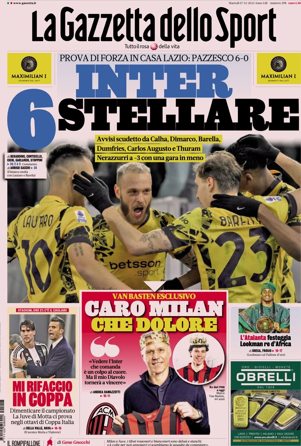 Le prime pagine dei quotidiani sportivi in edicola martedì 17 dicembre