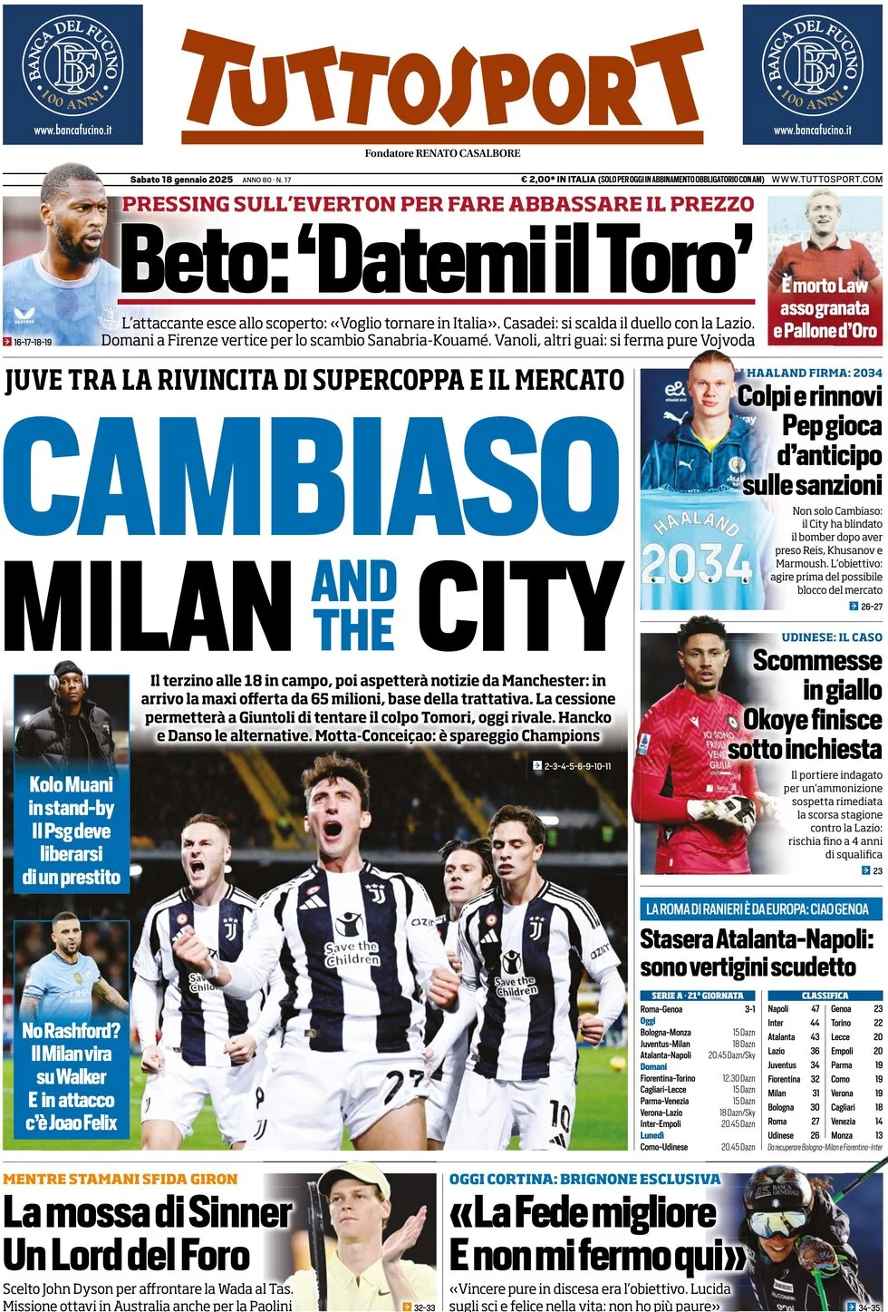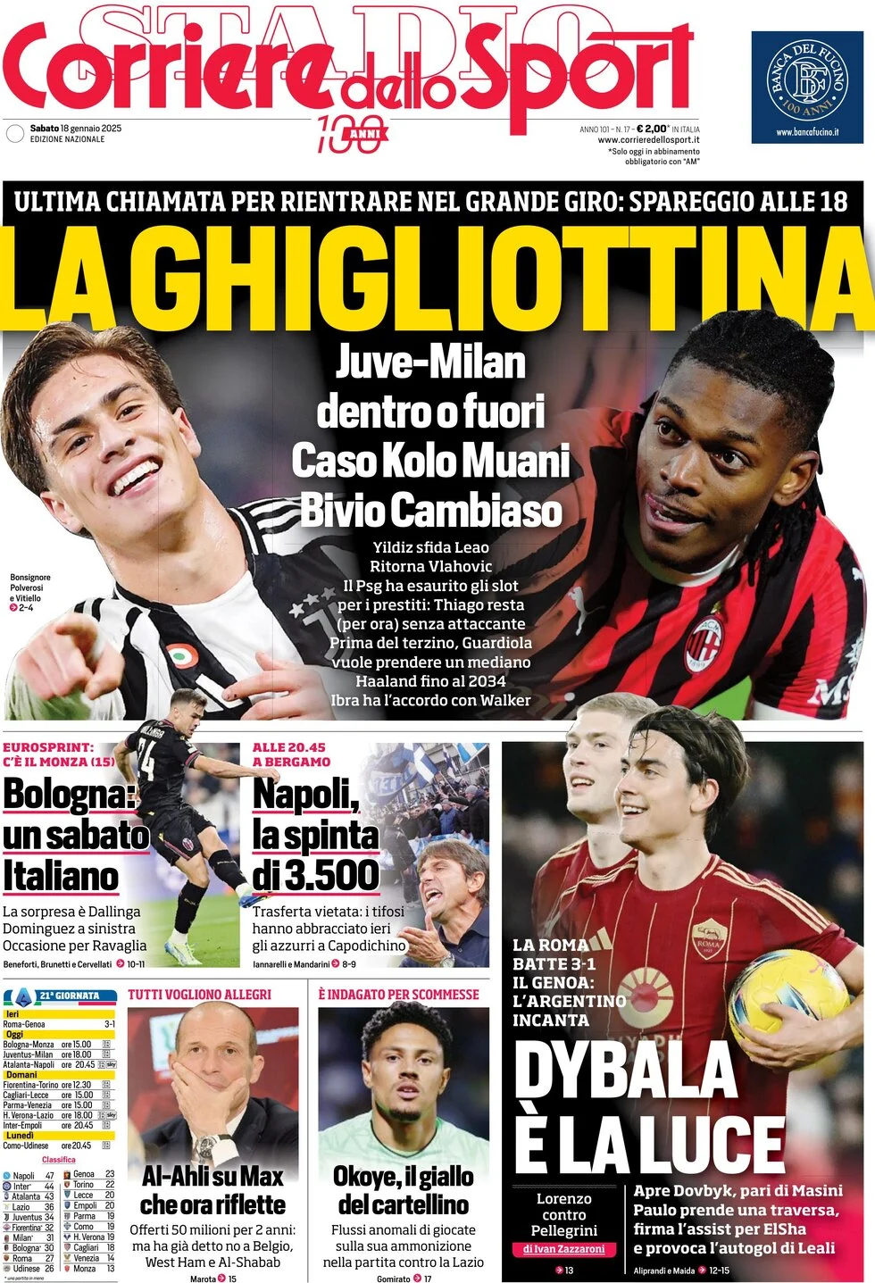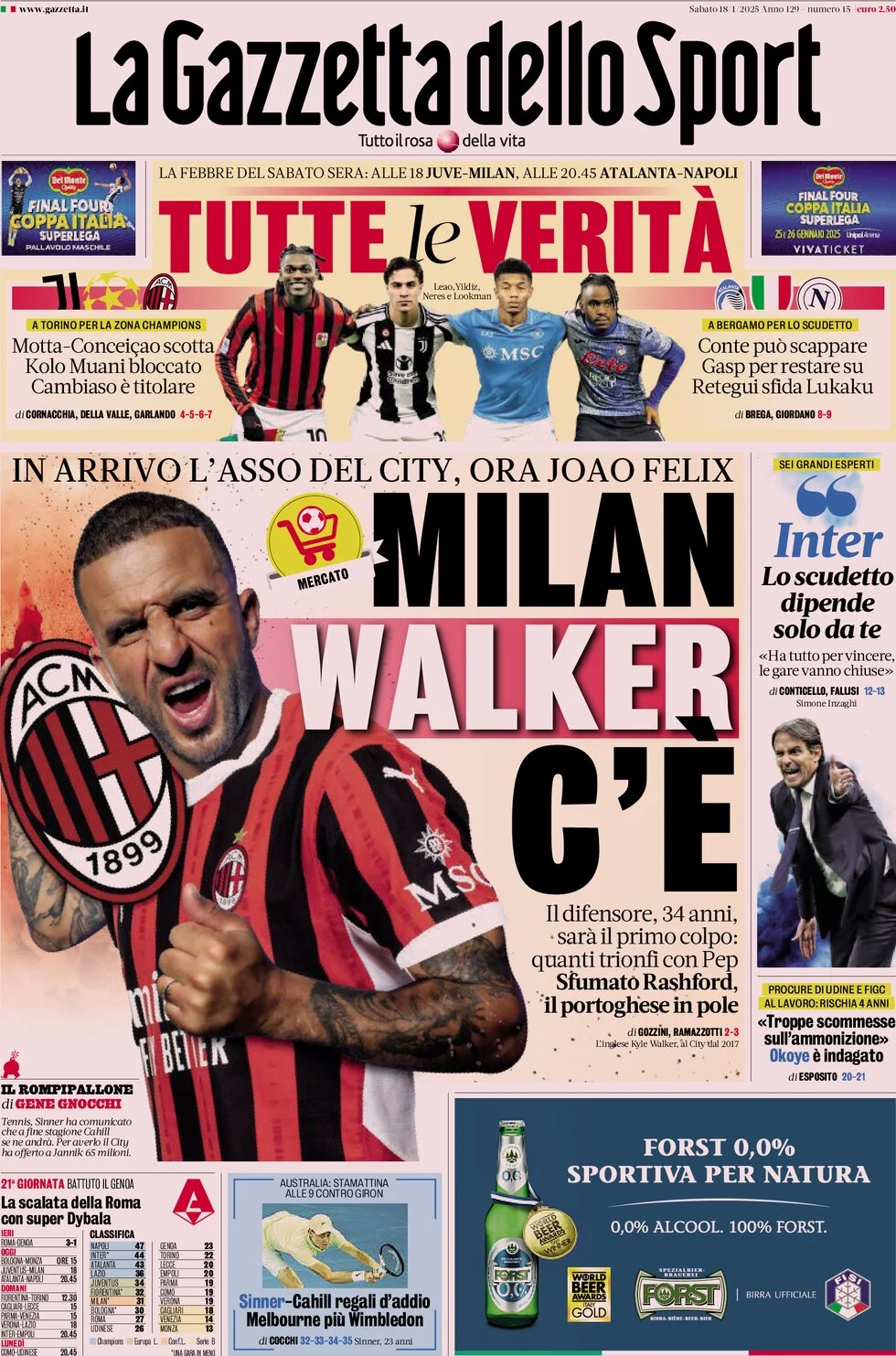 Le prime pagine dei quotidiani sportivi in edicola sabato 18 gennaio