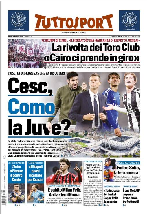 Le prime pagine dei quotidiani sportivi in edicola giovedì 6 febbraio