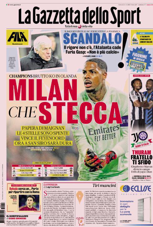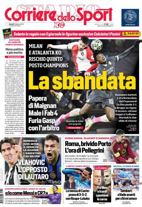 La redazione di calciocatanzaro propone ai lettori le prime pagine dei tre quotidiani sportivi in edicola oggi, giovedì 13 febbraio 2024