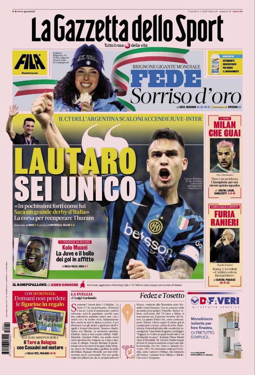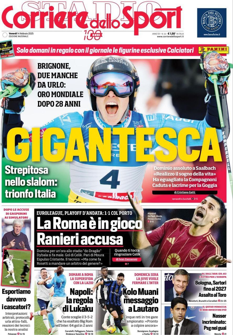 Le prime pagine dei quotidiani sportivi in edicola venerdì 14 febbraio