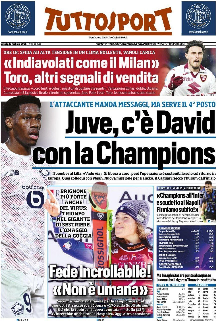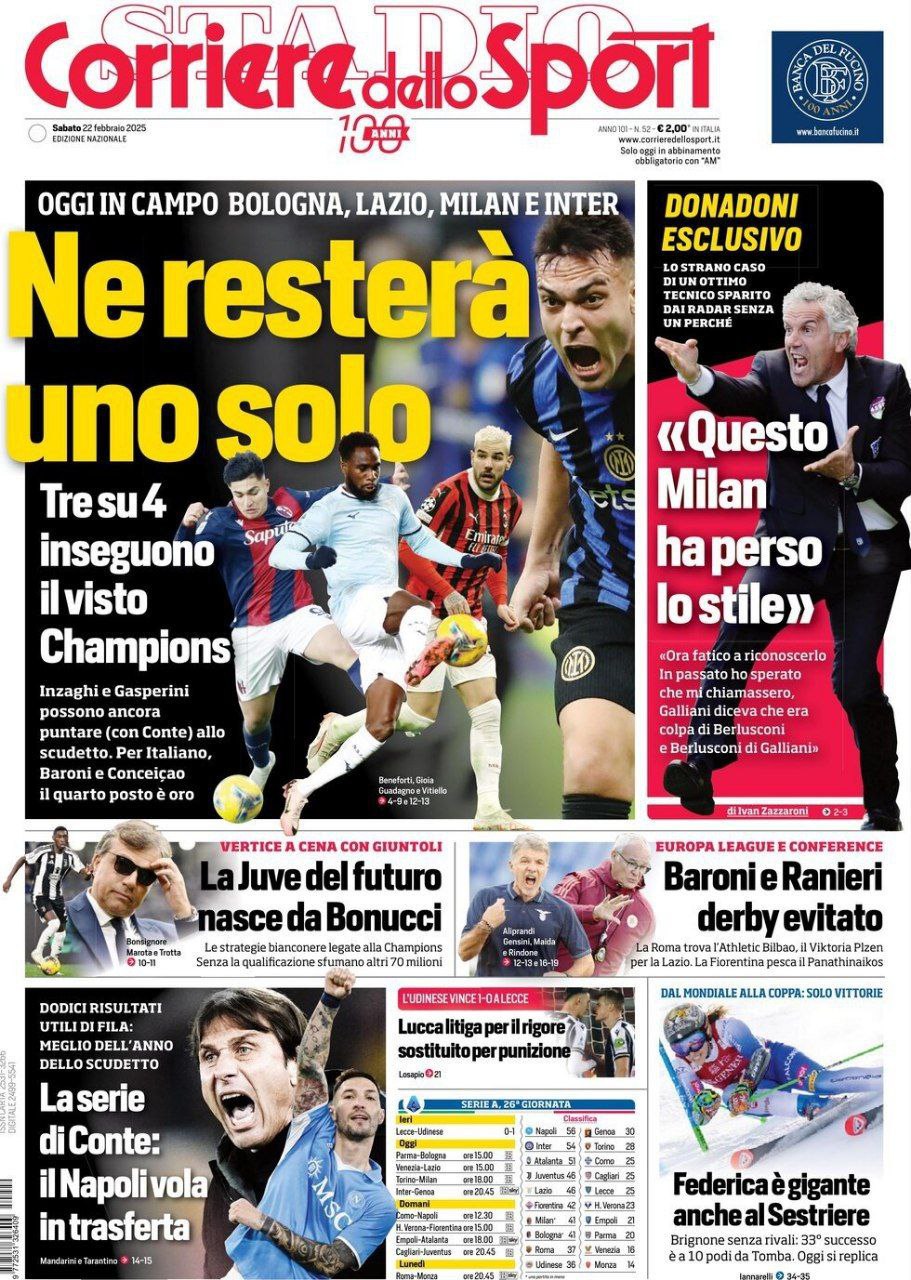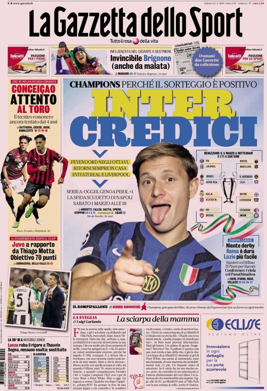La redazione di calciocatanzaro propone ai lettori le prime pagine dei tre quotidiani sportivi in edicola oggi, sabato 22 febbraio 2025