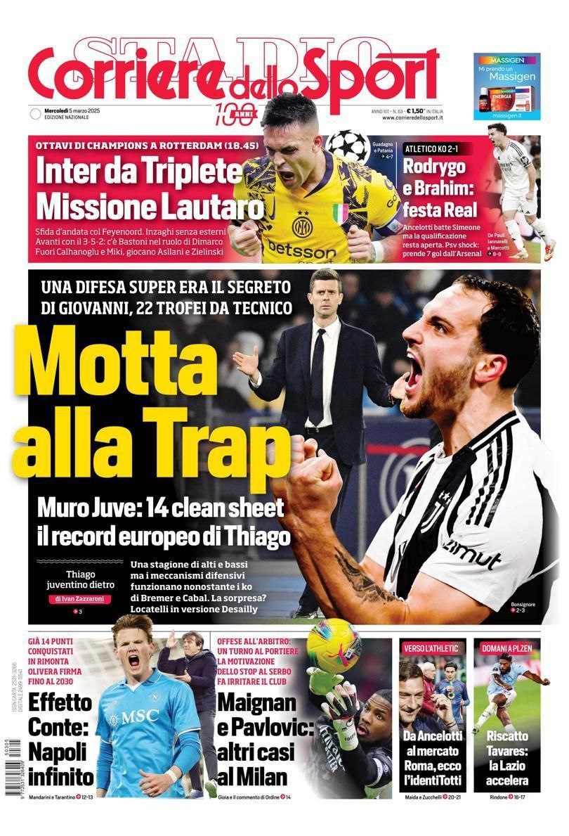 La redazione di calciocatanzaro propone ai lettori le prime pagine dei tre quotidiani sportivi in edicola oggi, mercoledì 5 marzo 2025