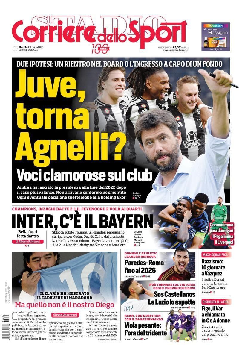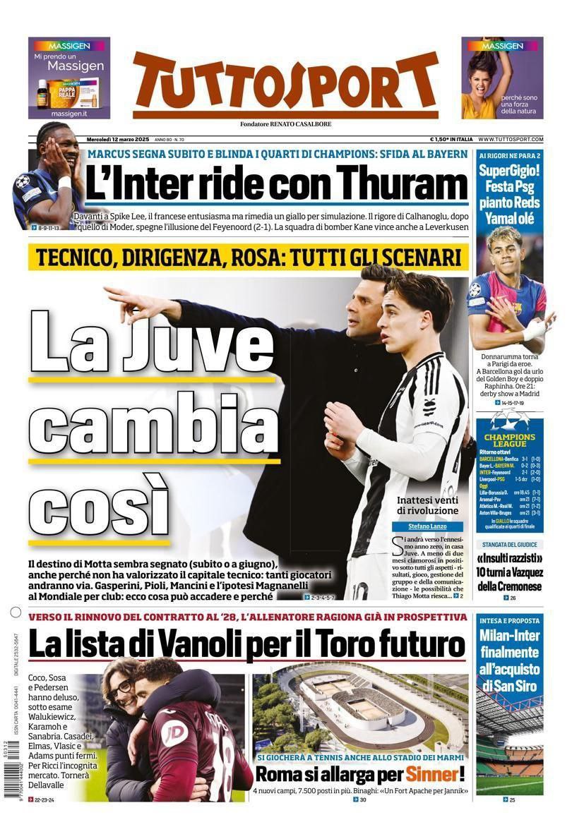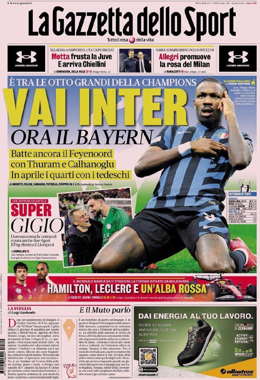 La redazione di calciocatanzaro propone ai lettori le prime pagine dei tre quotidiani sportivi in edicola oggi, mercoledì 12 marzo 2025