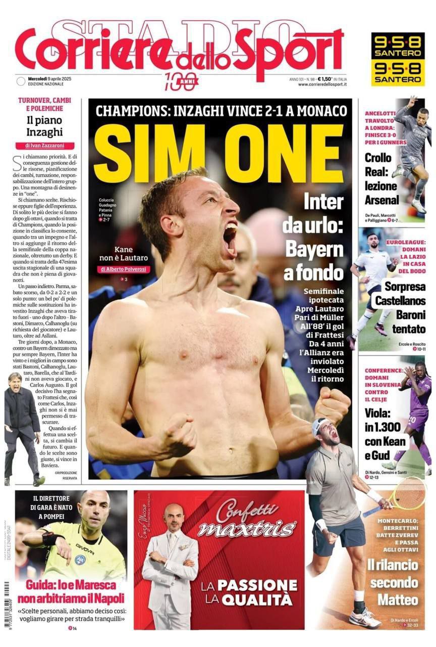 La redazione di calciocatanzaro propone ai lettori le prime pagine dei tre quotidiani sportivi in edicola oggi, mercoledì 9 aprile 2025
